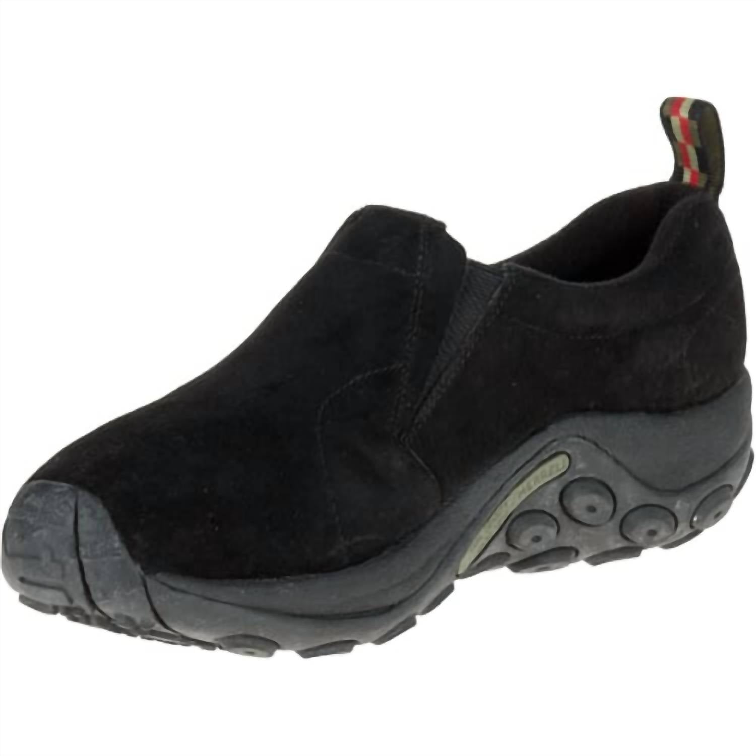 The MERRELL Men's Jungle Moc Waterproof Sneaker in black is a stylish streetwear choice with practicality for your spring vacation. Designed for women, it boasts a round toe and flat heel, ensuring comfort during casual outings. Enjoy the sleek appeal of this flat, 1-inch and under heel shoe, perfect for the modern wardrobe and adaptable to various settings.