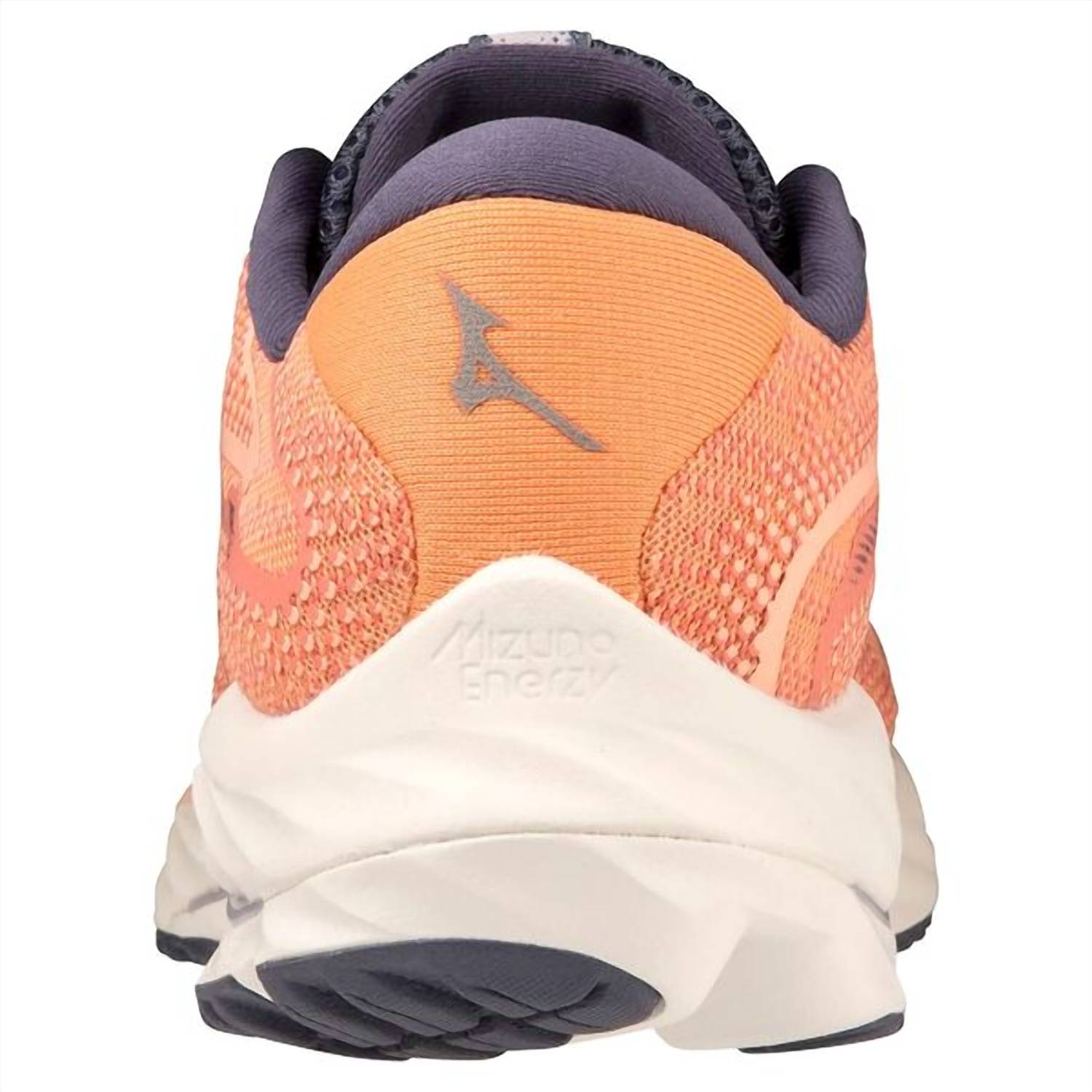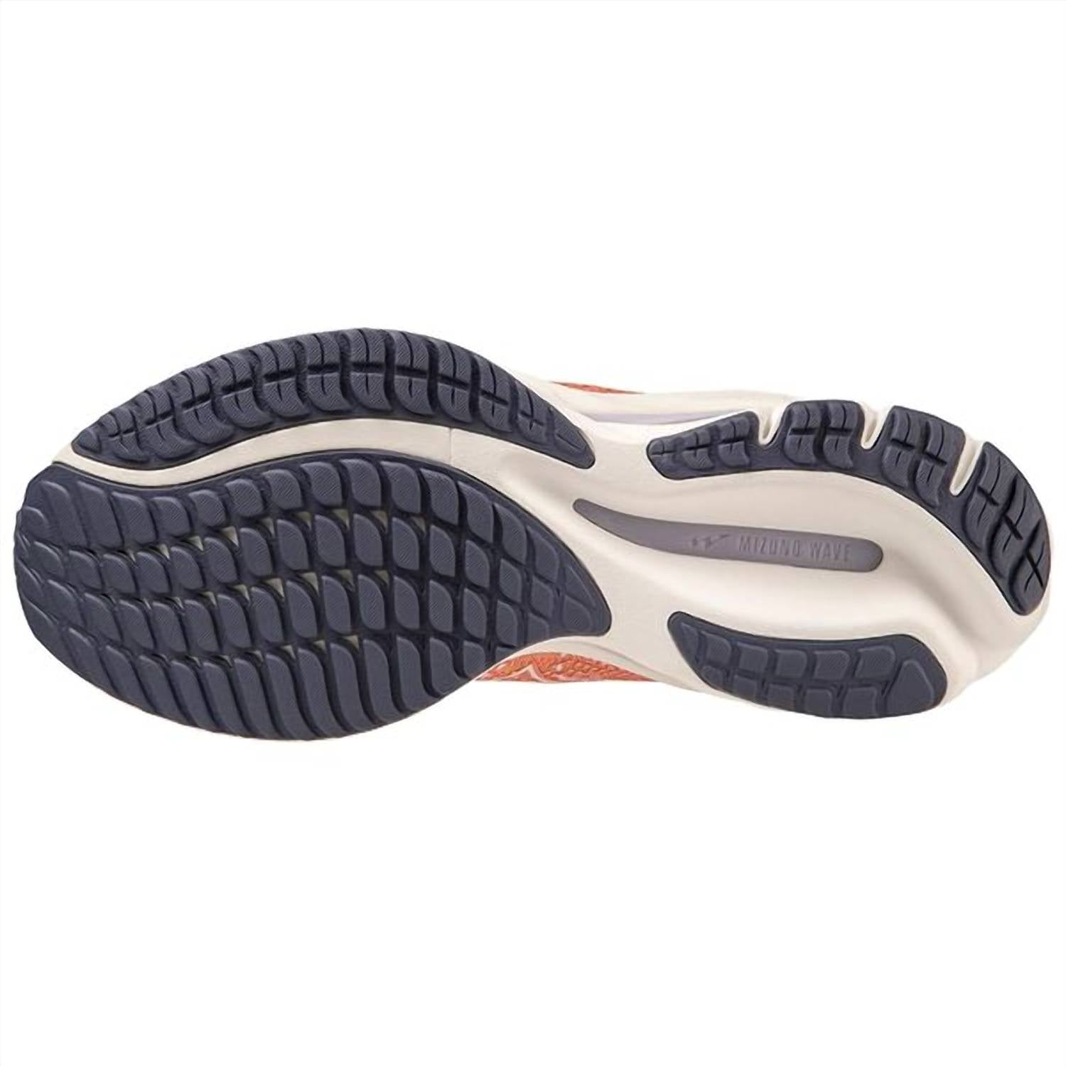 Step into unparalleled comfort with the Women's Rider 27 by MIZUNO, your essential running shoe in vibrant Coral Reef with subtle Snow White accents. Crafted with an engineered mesh upper, this shoe is both breathable and durable, perfect for fitness and workout occasions. Featuring a 12mm drop with a stack height of 26mm at the forefoot and 38mm at the heel, the shoe weighs 8.3 oz (Size 8), offering stability with MIZUNO WAVE® technology, and the lasting strength of an X10 carbon rubber outsole. Embrace its eco-friendly materials for a sustainable step forward this Fall season.