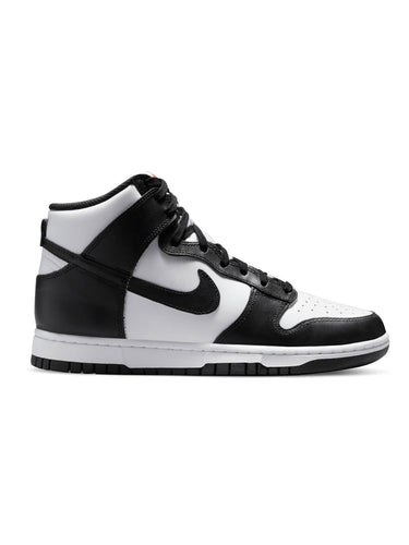 Step into retro style with the NIKE Women's Dunk High Panda Shoe, a nostalgic nod to '80s basketball fashion. Crafted from crisp leather, these sneakers exhibit durable overlays and a padded high-top collar for both an old-school aesthetic and comfort. The foam midsole provides lightweight, responsive cushioning, while the rubber outsole enhances durability and traction with its classic hoops pivot circle. Enjoy the bold color-blocking in Black/White-University Red, perfect for making a statement at any spring holiday party.