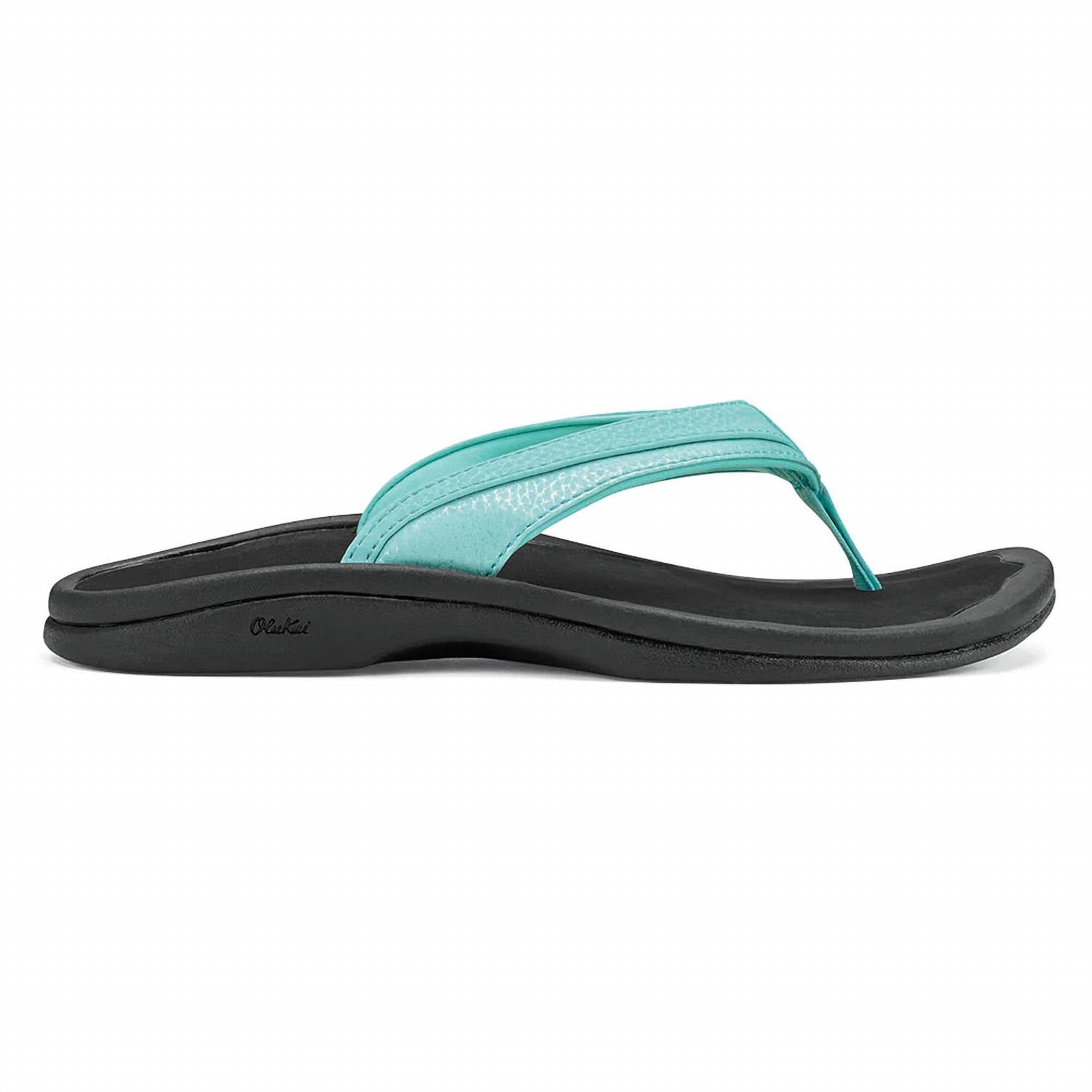 Experience the perfect blend of comfort and style with the Women's Ohana Flip Flop Sandal by OluKai in Sea Glass / Black. These sandals feature a water-resistant synthetic upper with a quick-drying jersey knit lining and a soft nylon toe post, offering an ultra-comfy fit with options in solid or split strap designs. The compression-molded EVA midsole paired with a smooth drop-in ICEVA footbed ensures an anatomical fit and all-day comfort, while the non-marking rubber outsole with razor-siped edges provides enhanced traction on wet surfaces. Ideal for women seeking flat heels, these sandals are designed with an open toe and ensure a comfortable stride.