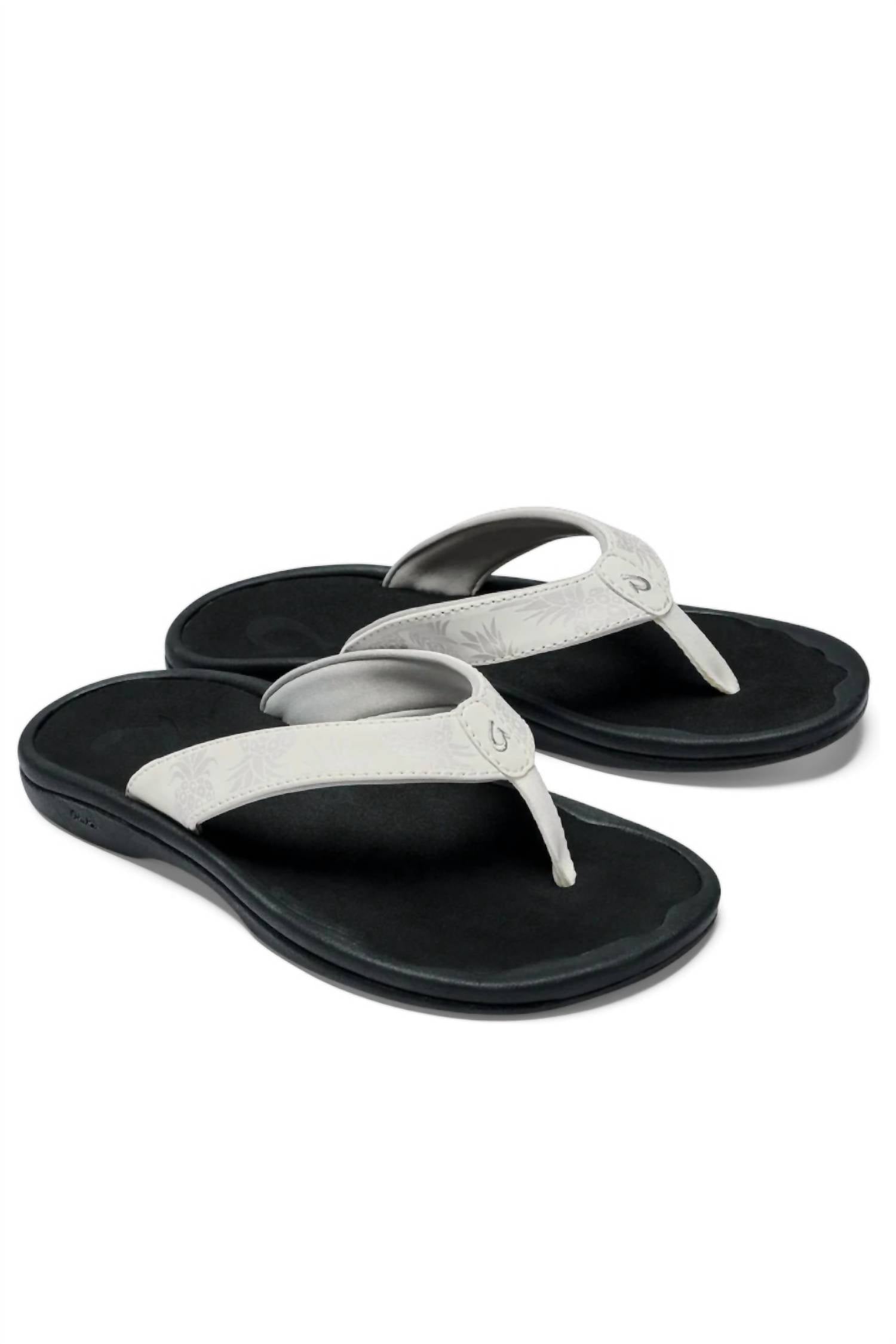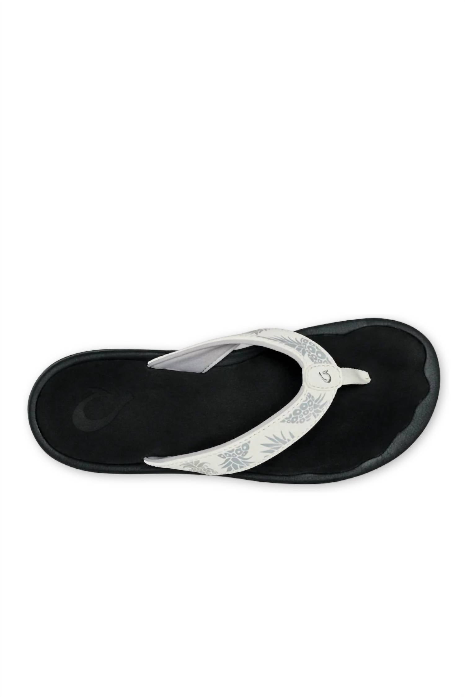 Introducing the Women's Ohana Flip Flops by OluKai, designed with a nod to 'ohana, the welcoming spirit of extended family. These bright white sandals offer water-friendly versatility, a non-marking rubber outsole for enhanced traction, and a round toe style for all-day comfort and support. Perfect for a boho chic beach day, they embody the essence of summer with effortless ease. Enjoy everyday comfort with this flat heel design, ideal for any sun-soaked adventure.