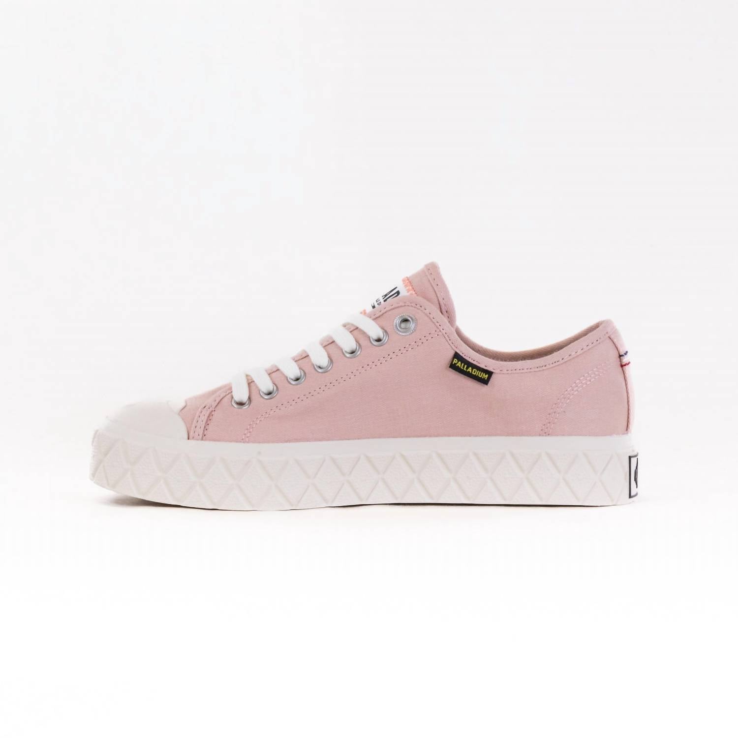 Step into sustainable style with the Women's Palla Ace Canvas Organic Sneakers by Palladium in elegant Nature Pink. These low-cut sneakers feature a 25mm flat heel for ultimate comfort and style. Crafted from 100% organic cotton with a robust rubber outsole, they offer durability and everyday ease. Closure: Lace-up. Ideal for the spring season, these sneakers embrace modern minimalist trends while reflecting Palladium's rich French heritage, highlighted by a tricolore flag on the side.