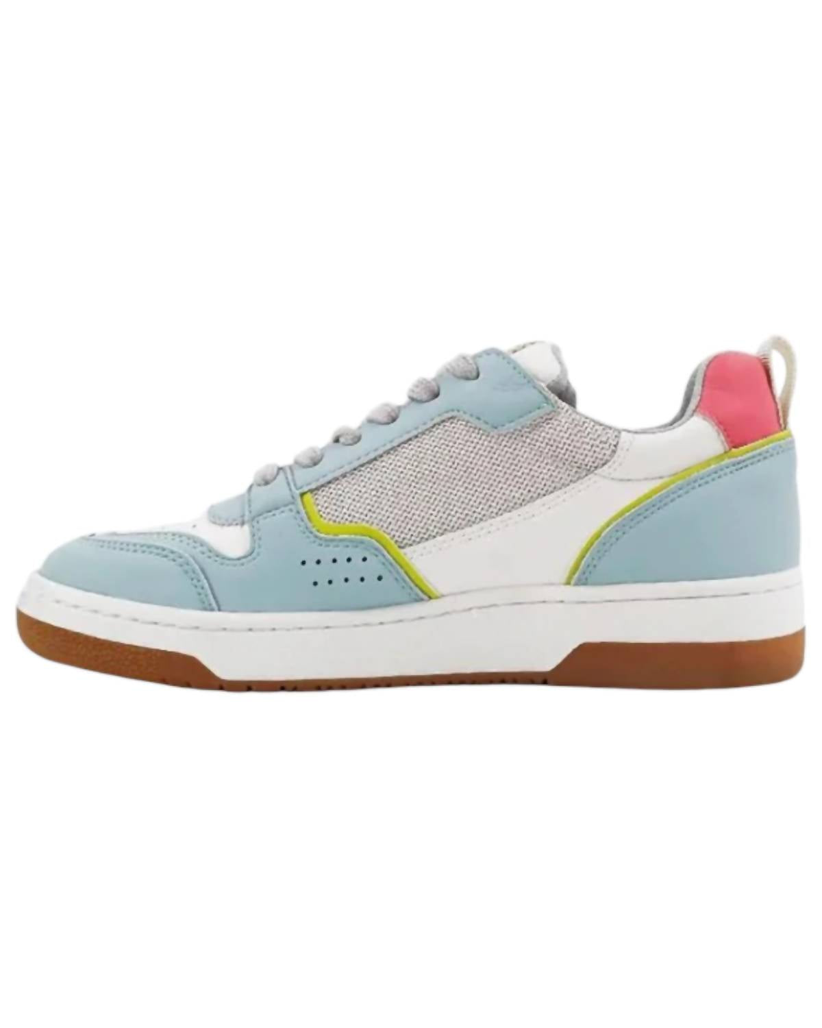 Step up your style game with the Women's Romi Sneakers by SHU SHOP, designed in a vibrant Aqua hue. These trendy low-top sneakers offer a striking '80s vibe, featuring a mix of bright-colored supple faux leather, suede, and mesh uppers. They sit on chunky rubber soles, ensuring both style and comfort with every step. Designed with a round toe and flat heel, these sneakers offer a medium width fit, making them perfect for the modern woman's wardrobe.