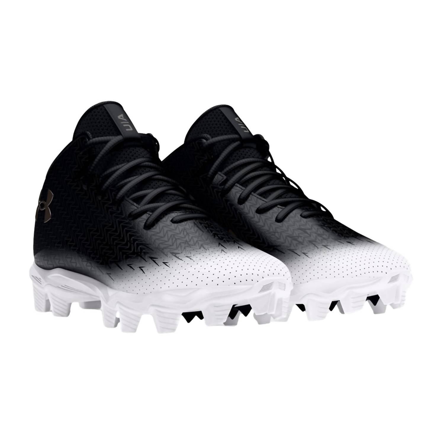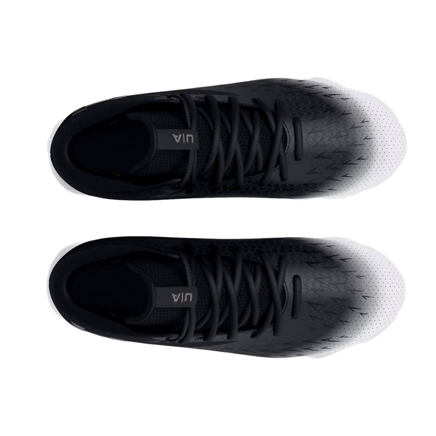 Introducing the Under Armour Men's Spotlight Franrm 4.0 Shoes, engineered for peak performance on the field. These black athletic shoes feature a durable synthetic upper and are equipped with a cushioned insole and EVA midsole to ensure superior comfort. With rubber molded cleats, they offer exceptional traction on both turf and natural grass, ideal for players who require quick acceleration. Designed with a round toe shape, these shoes are perfect for adult men who demand agility and reliability in every game.