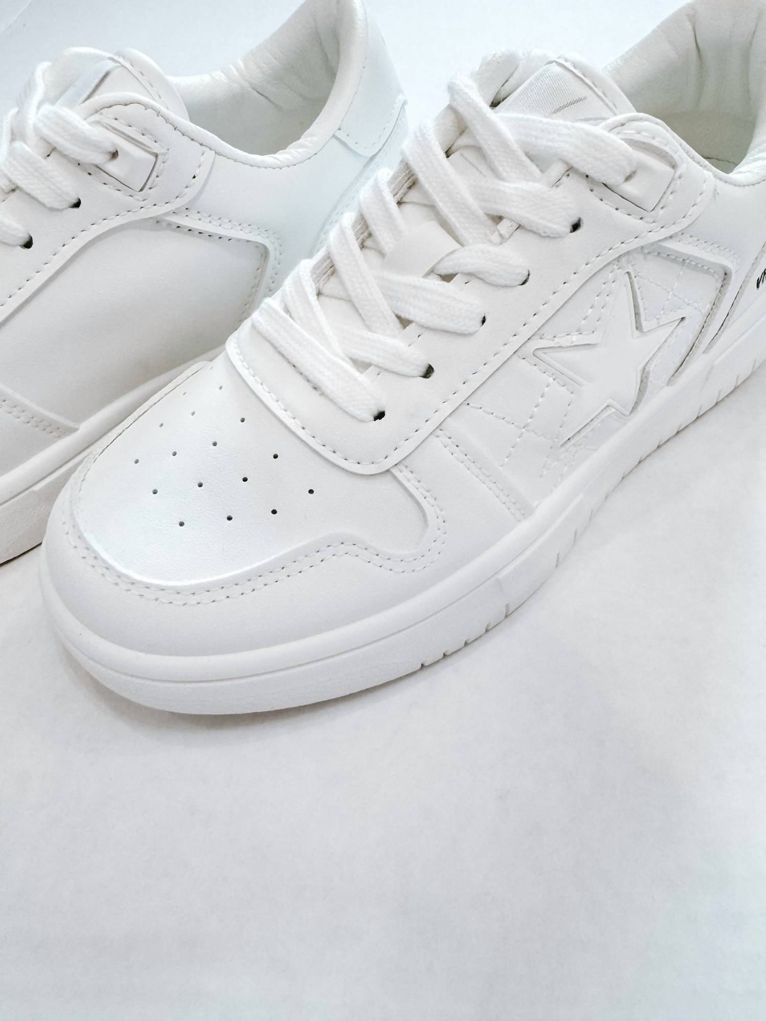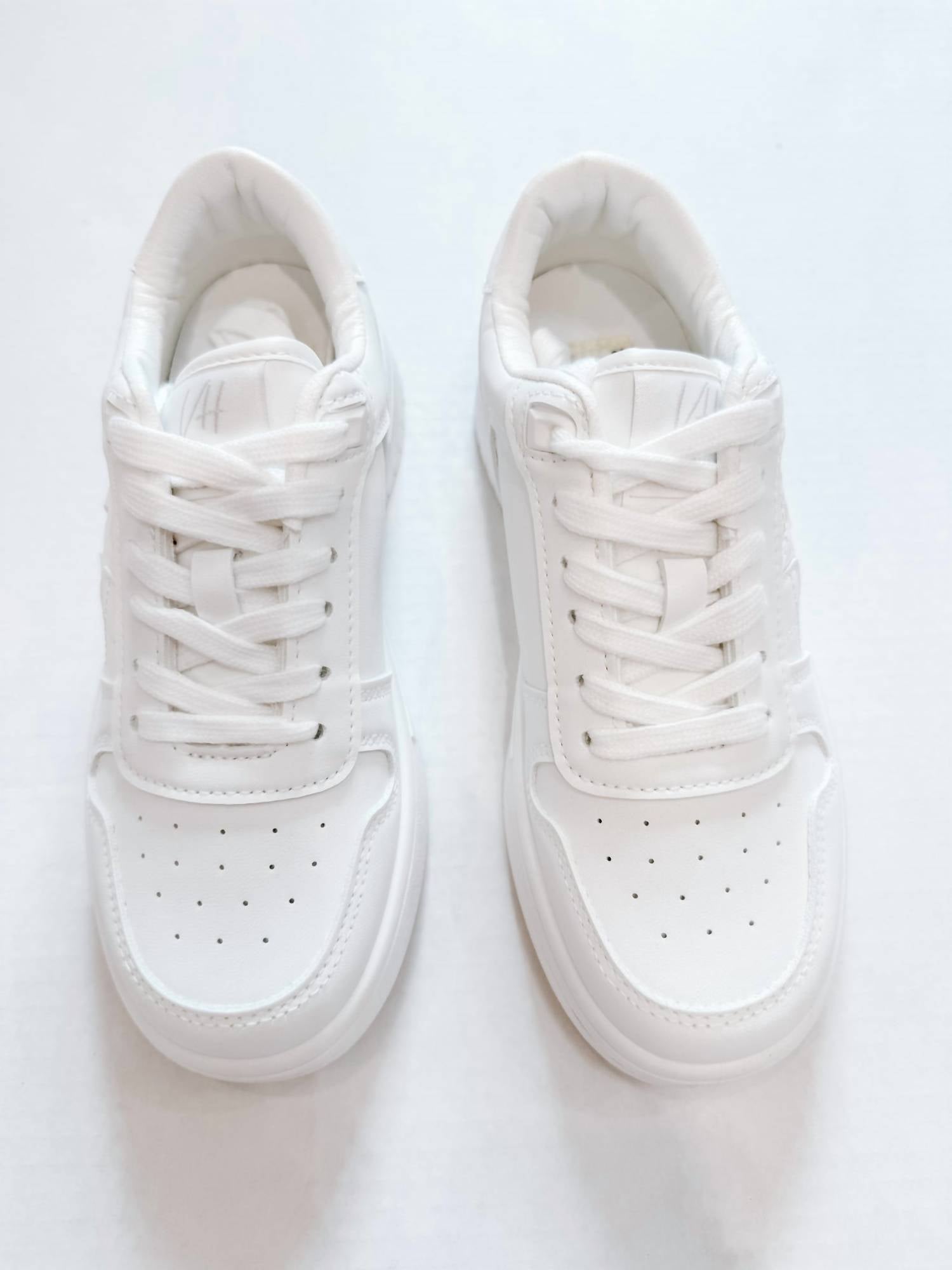 Cute, functional, and comfortable. These sneakers check all the boxes. Step out in style with the Women's Fresh Sneakers by Vintage Havana, perfect for a summer streetwear look. These sleek quilted white sneakers feature a flat heel and round toe, accented with distinctive black Vintage Havana details on the side and tongue. Crafted from premium leather, they come with matching white laces, and an added sneaker key chain for a playful touch. Ideal for any holiday party, these sneakers run true to size, showcased by Maggie who wears a size 8.