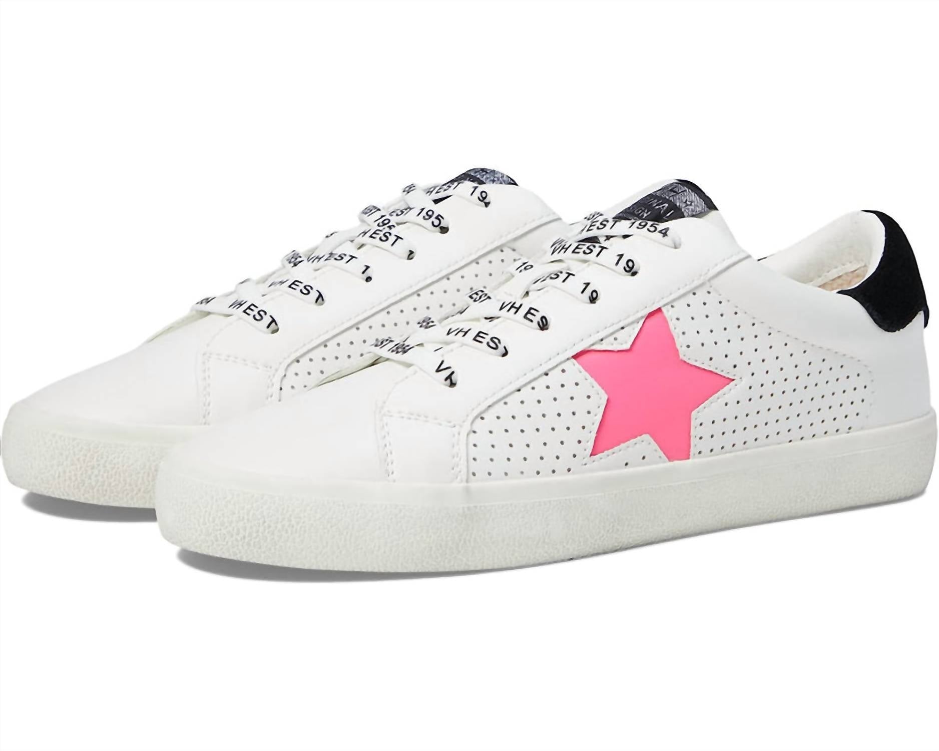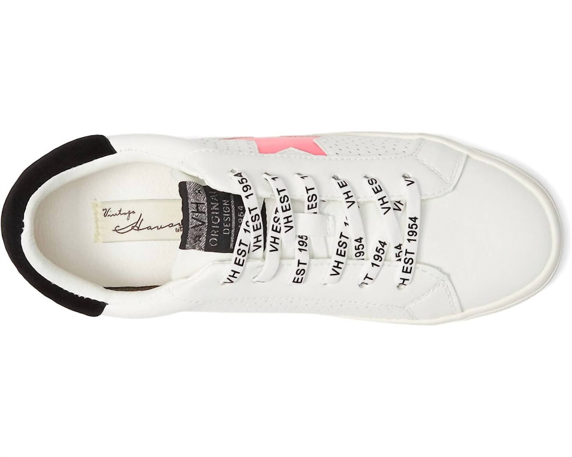 Step into style with the Women's Gadol Pop Sneakers by Vintage Havana, an on-trend choice in a chic white, pink, and black palette. These sneakers effortlessly combine a synthetic and leather upper with a distressed, slightly dirty outsole for a worn-in look. Designed with a round toe shape, they fit true to size, ensuring comfort and style with every step. Enjoy the perfect blend of fashion and function with these standout sneakers.