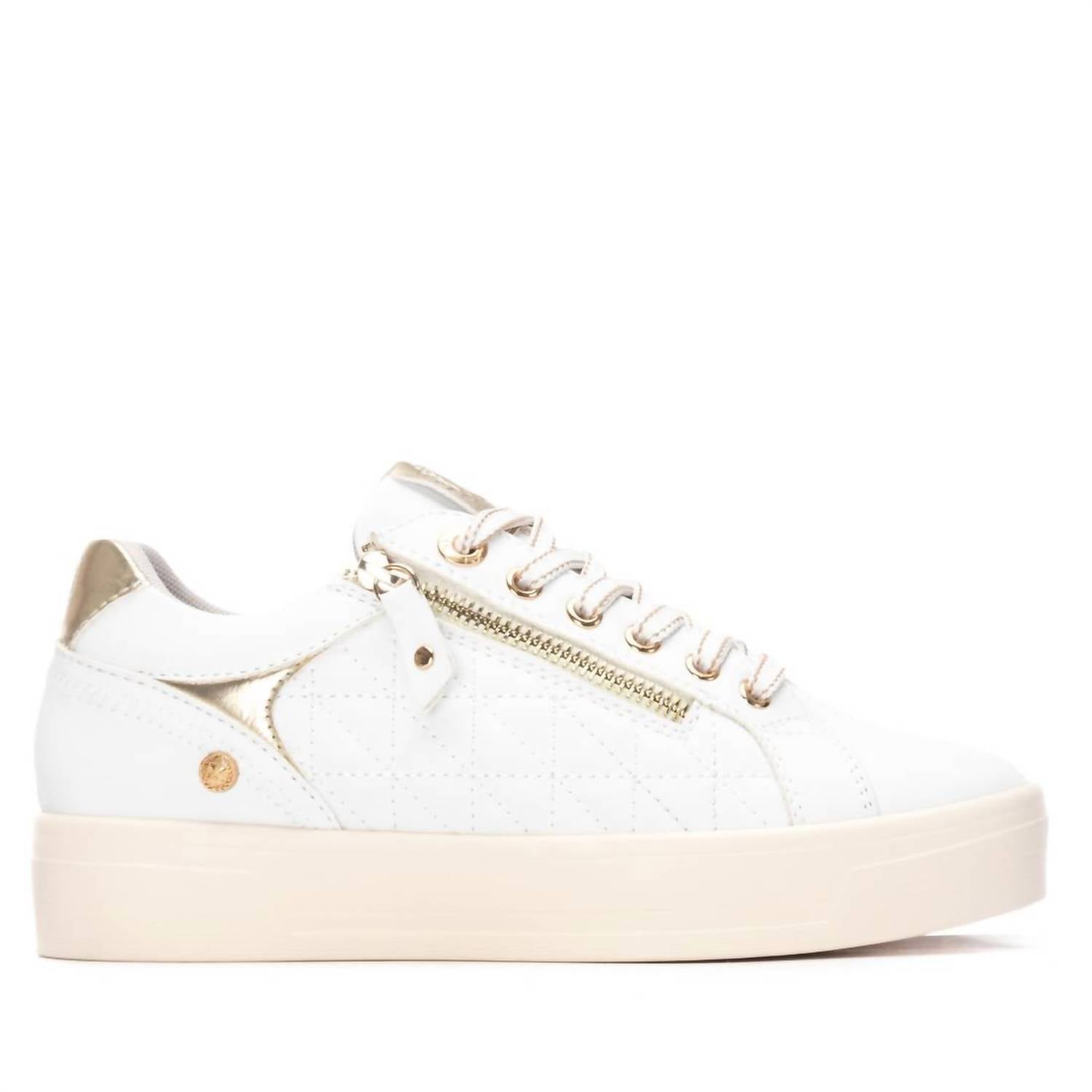 Cute, functional, and comfortable. These sneakers check all the boxes. Introducing the Xti Women's 144413 Round Toe Sneakers, a sleek choice for minimalist style in classic white. Crafted from premium leather, these sneakers are perfect for everything from casual outings to a festive Thanksgiving dinner party. Designed with a medium shoe width and a flat heel (1" & Under), they offer all-day comfort for the adult woman. Pair these round toe essentials with your favorite spring ensemble for a look that blends superior quality with chic, effortless style.