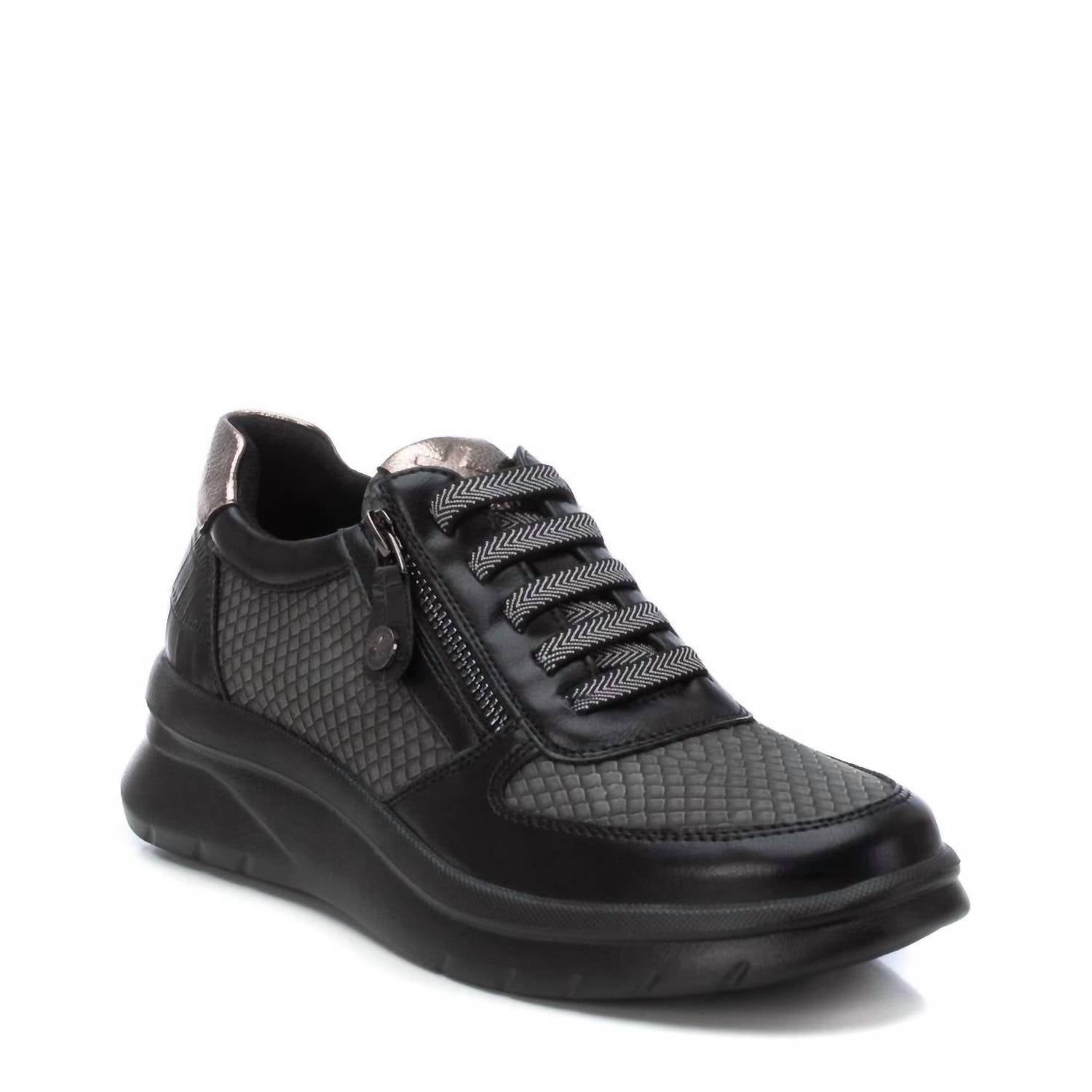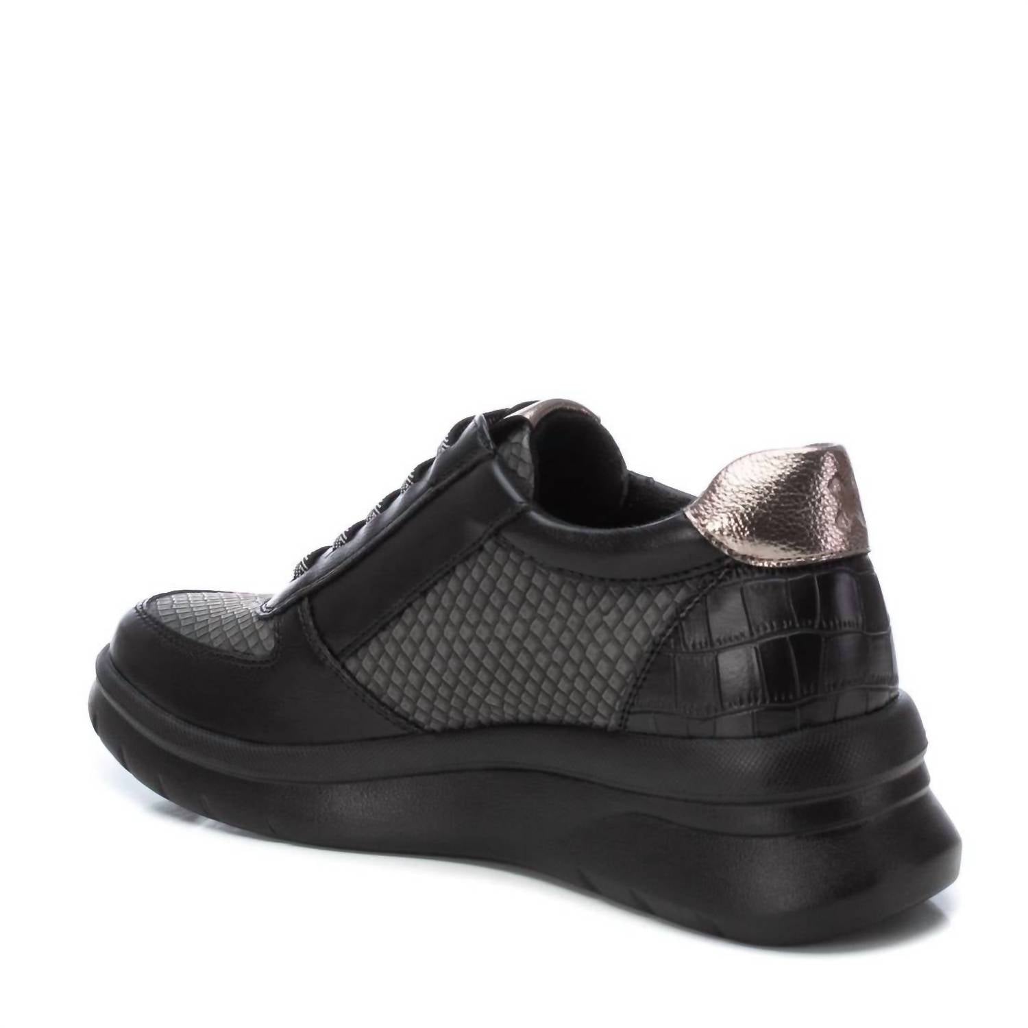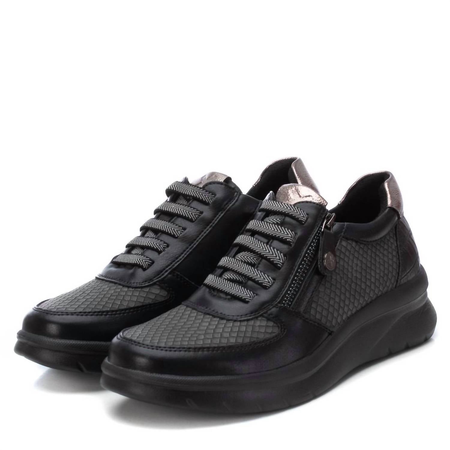 Step up your style with the Women's Casual Sneakers by Xti, featuring a blend of comfort and trendy design. Made from high-quality faux leather, these sneakers include a side zipper and adjustable laces for an optimal fit. The durable, non-slip rubber sole and padded, removable insole ensure all-day comfort. These vegan-certified sneakers also boast a decorative interlaced design with metallic details, adding an upscale touch to any outfit.