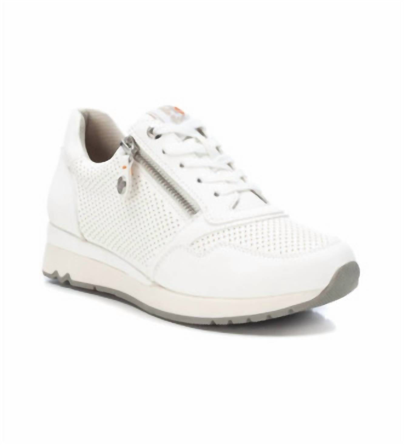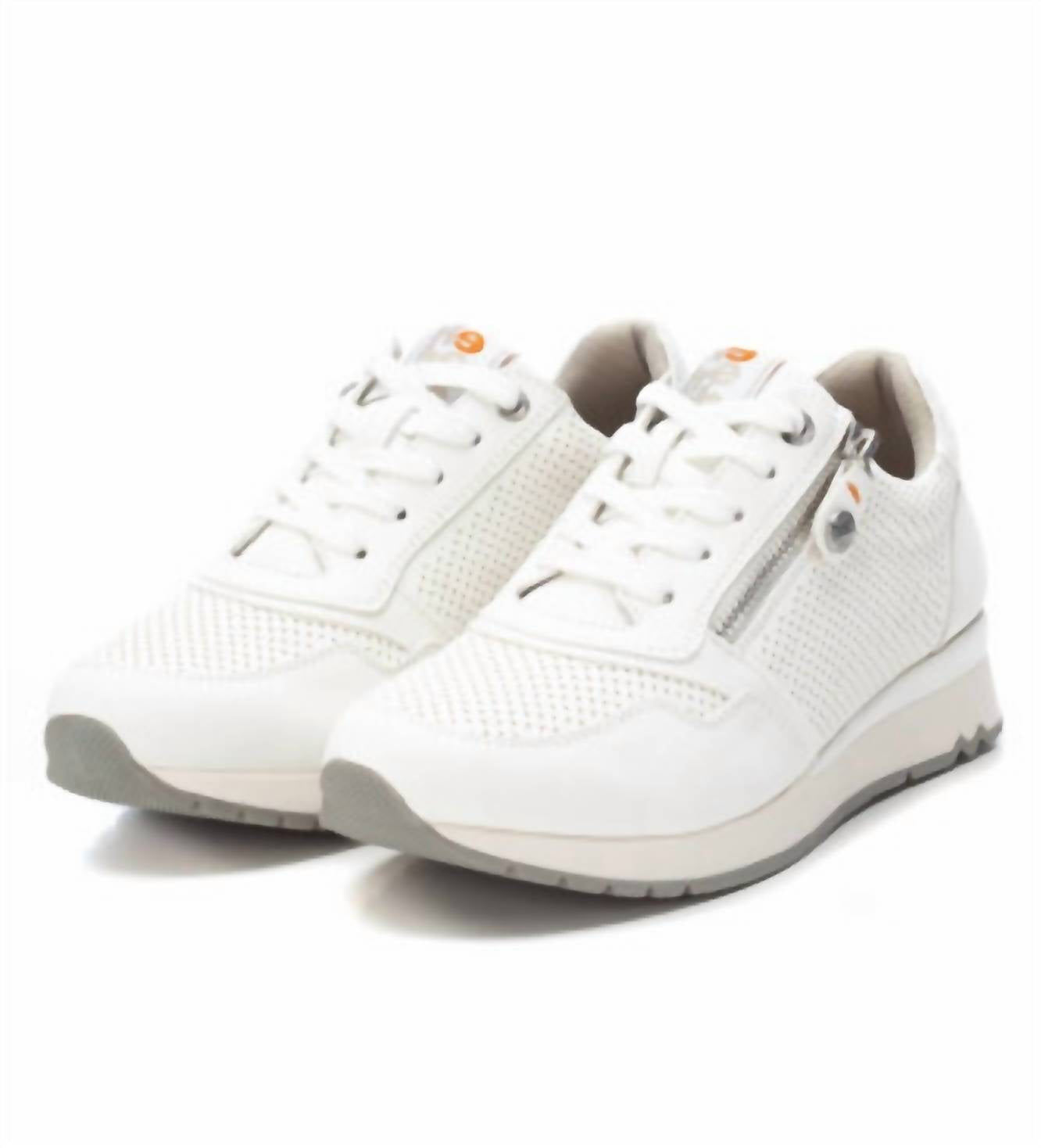 This Women’s Trainer Sneakers are crafted from high-quality faux leather. Featuring a thousand-point design, side zip fastening, and adjustable laces for a snug fit. The non-slip rubber sole provides reliable traction. Proudly PETA-certified vegan.