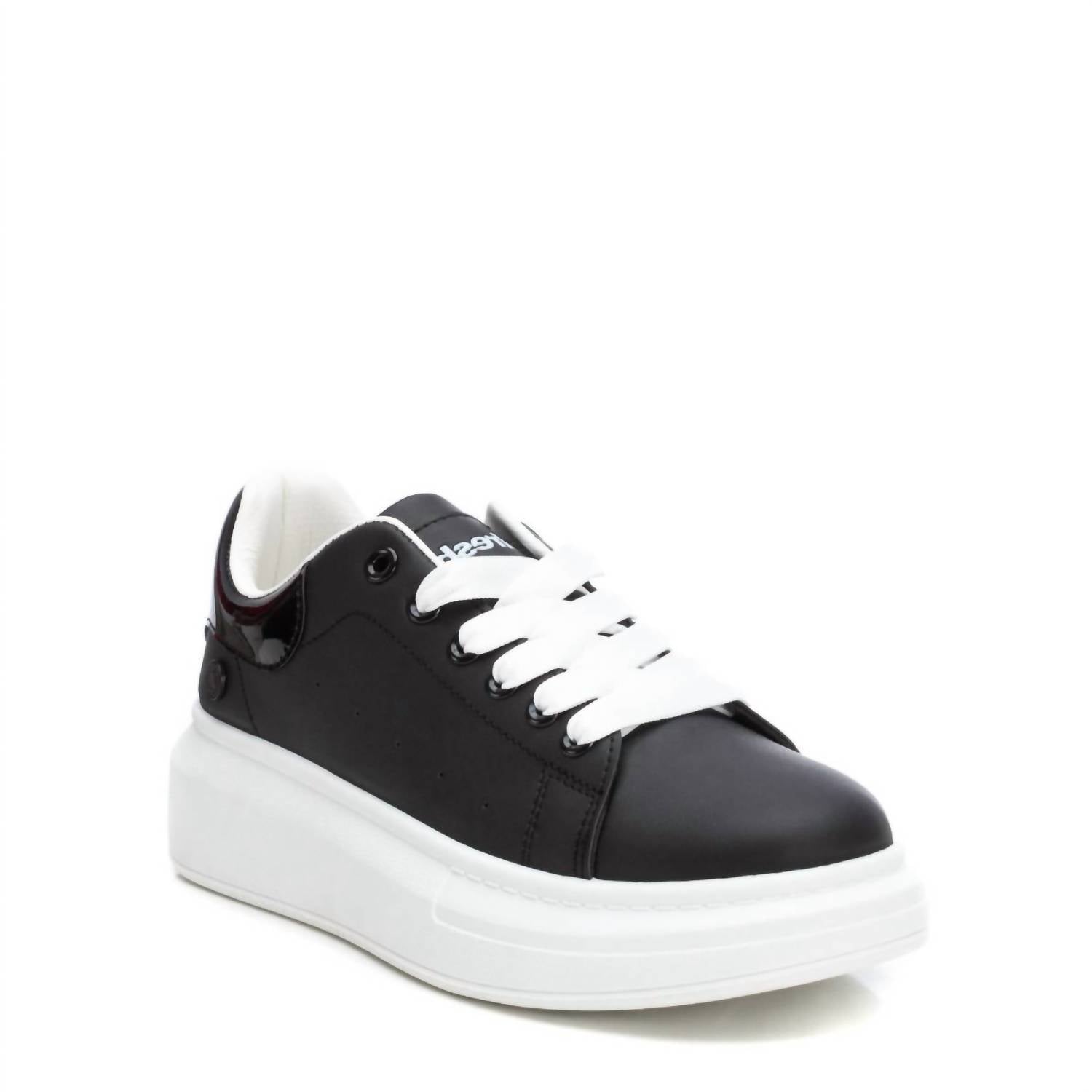 When fashion and function come together seamlessly.This Women’s Trainer Sneakers are crafted from high-quality faux leather. Adjustable lace closure ensures a snug fit, and the non-slip rubber sole provides stability. The sleek black hue adds versatility. Proudly PETA-certified vegan.