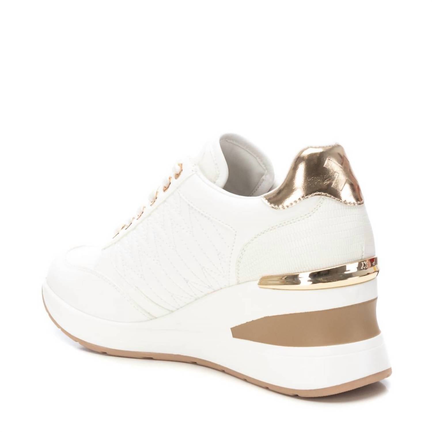 These Trainer Sneakers are crafted from faux leather with a side zipper and adjustable laces for a secure fit. Metallic accents add a modern touch, while the non-slip rubber sole ensures stability. Featuring a removable insole for convenience, these sneakers are certified vegan by PETA, making them both stylish and ethical.