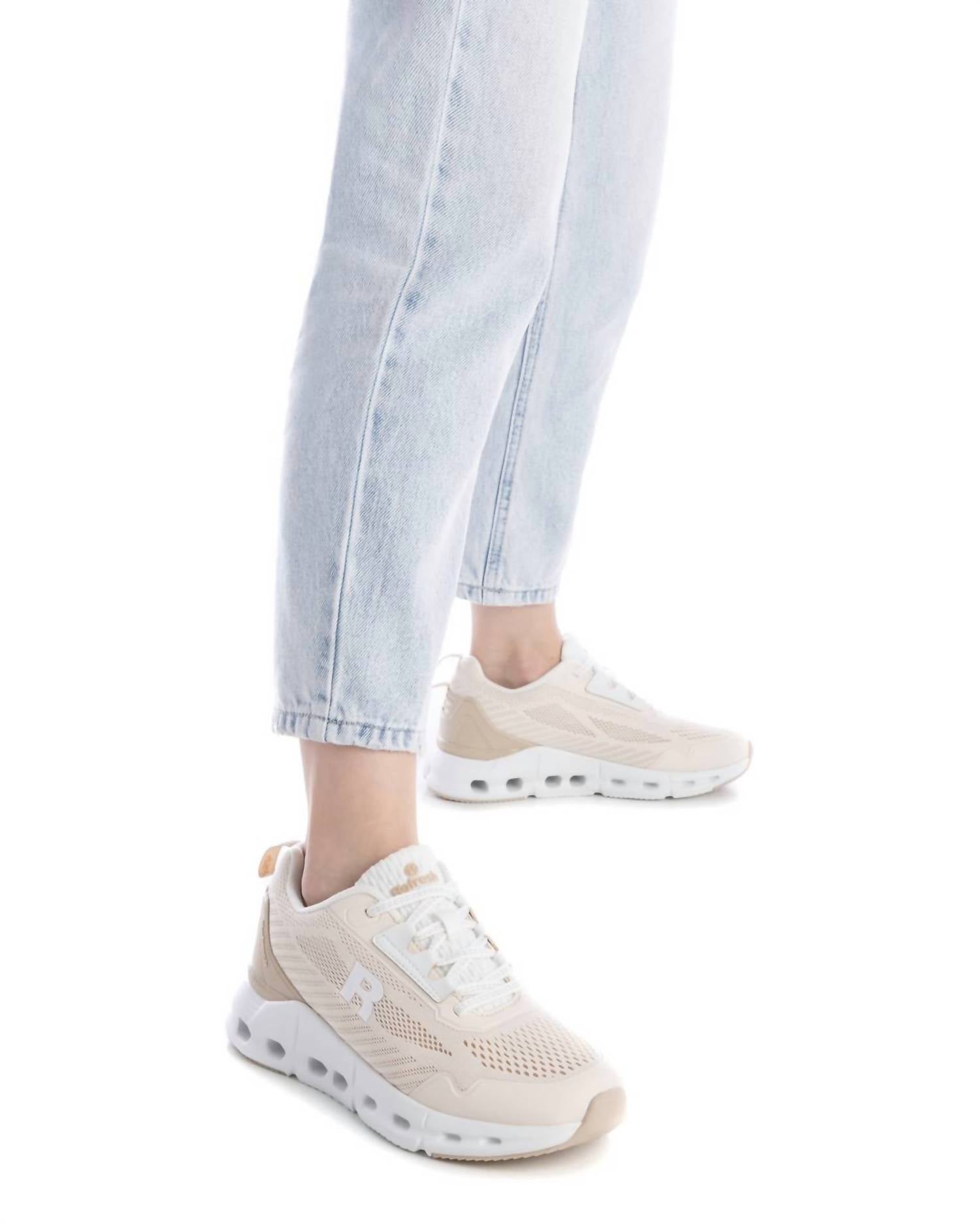Step into chic comfort with the Women's Casual Trainer Sneakers by Xti, a perfect blend of style and ease. Designed with technical synthetic fabric, these trainers feature a rear puller for easy wear. They boast an adjustable lace closure, a comfortable cushioned sole, and a flexible non-slip rubber outsole, complemented by a removable insole. Certified vegan by PETA, these round-toe shoes provide a low flat heel, making them an ideal casual choice for every occasion.