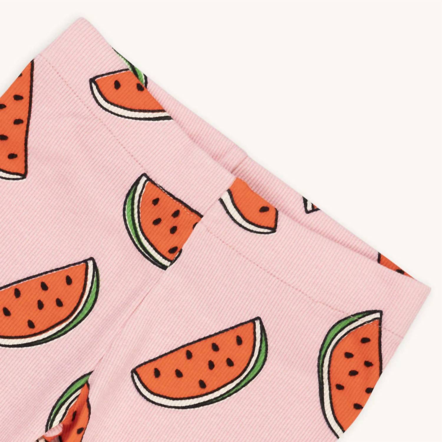 Watermelon-printed biker leggings. Machine wash warm. 48% Organic Cotton, 48% Modal, 4% Elastane.