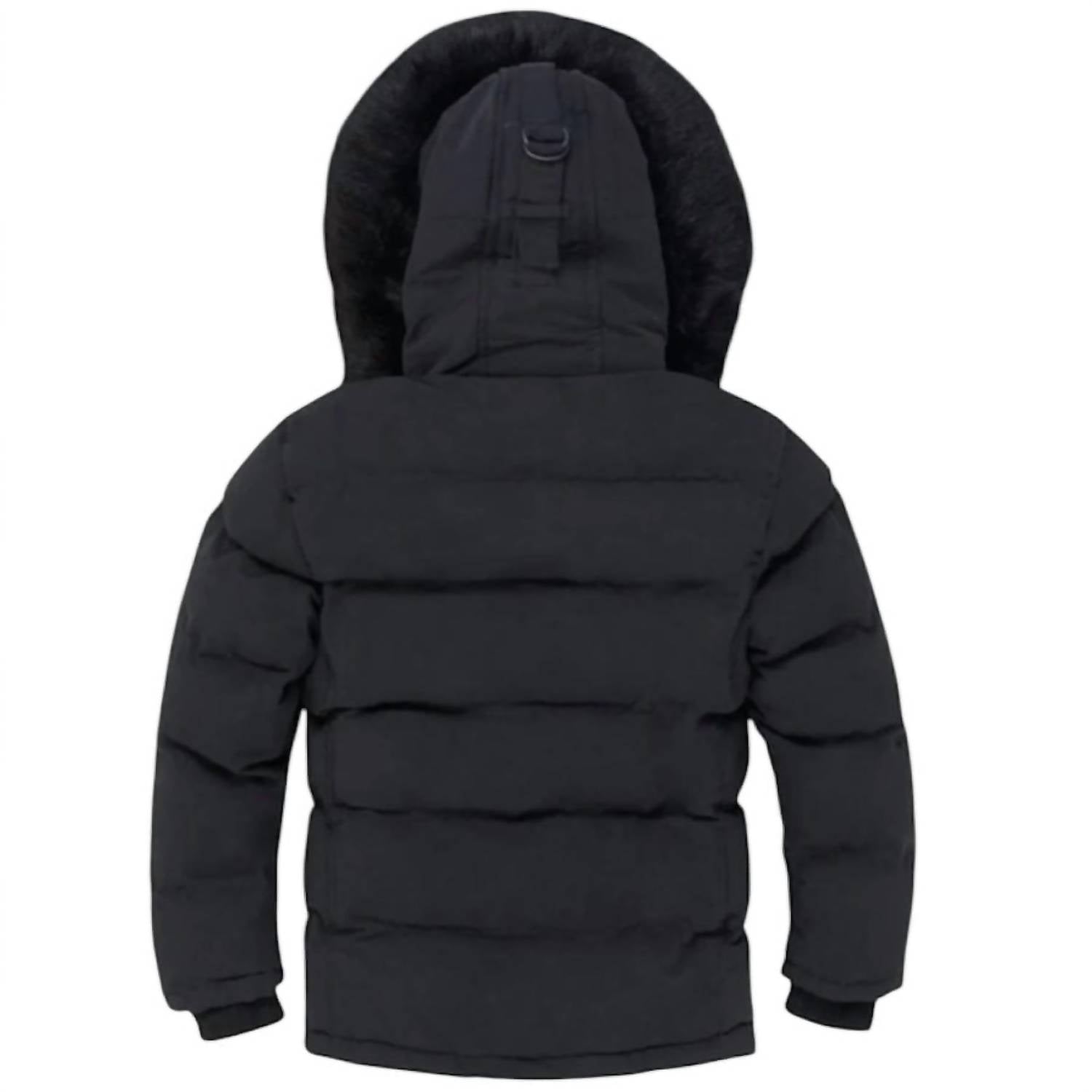 Introducing the Boy's Fargo Parka 2.0 Jacket by JORDAN CRAIG, a perfect blend of style and warmth for young adventurers. Featuring a cozy hood with faux trim, this black puffer coat ensures optimal comfort on chilly days. Crafted from quality polyester, it promises durability while maintaining a sleek, solid design. With easy dry cleaning care, it's the ideal addition to any boy's winter wardrobe.