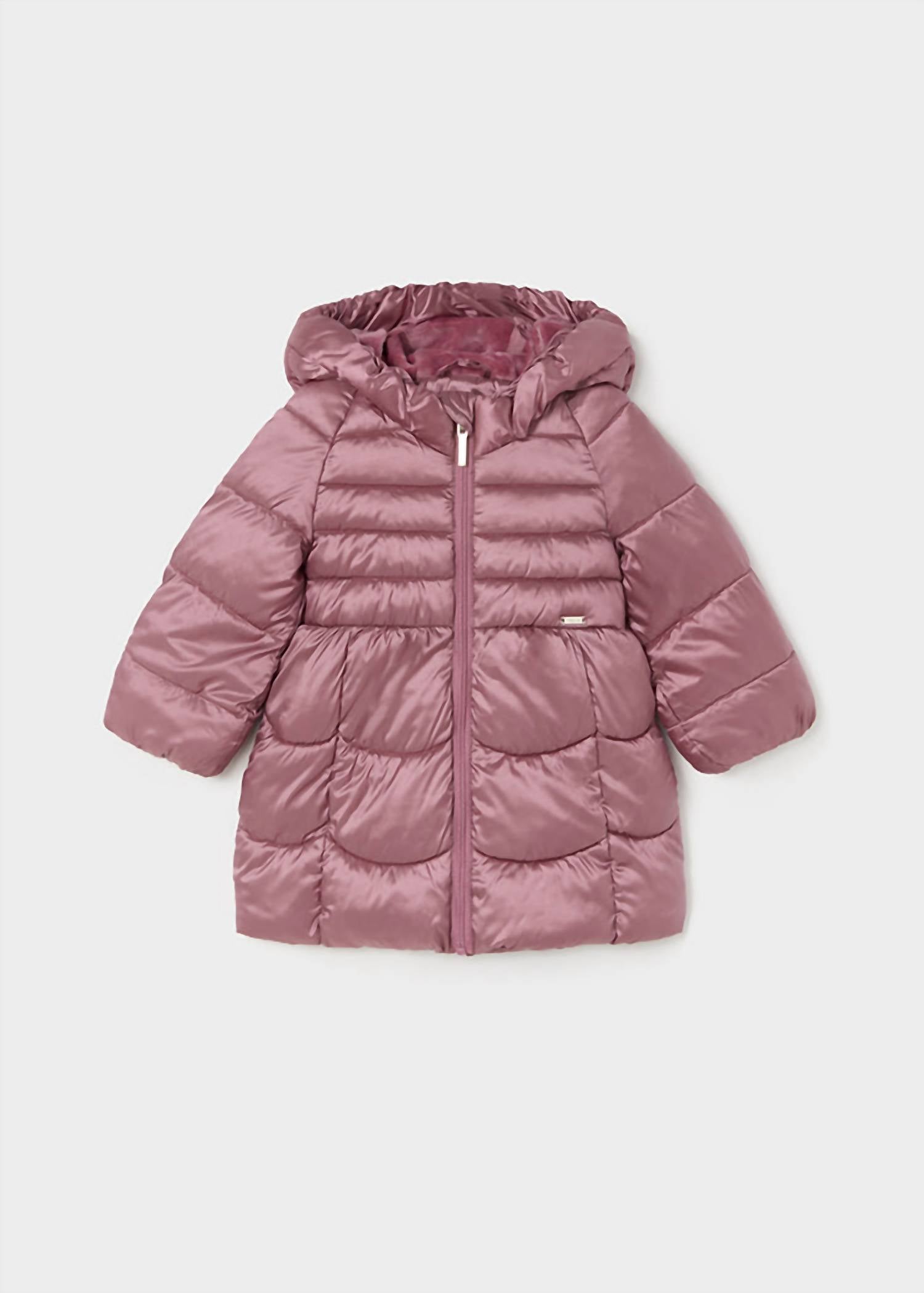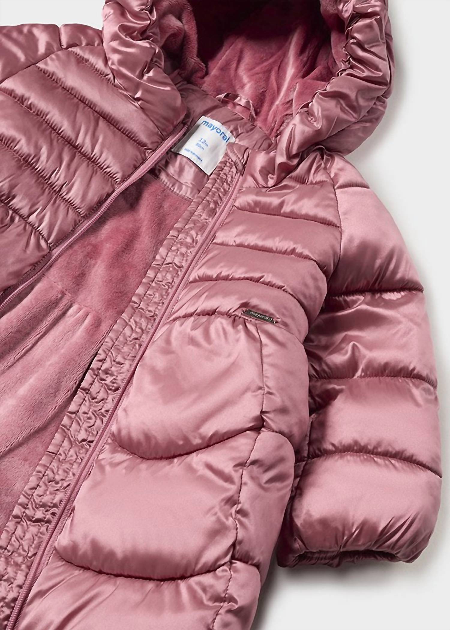 Wrap your little one in warmth and style with the Baby Girls Hooded Puffer Coat by Mayoral. Designed in a delightful orchid hue, this solid pattern coat is crafted from high-quality polyester. It's perfect for fall outings and travel, offering comfort and a chic preppy look. Easy to care for, simply machine wash and tumble dry.