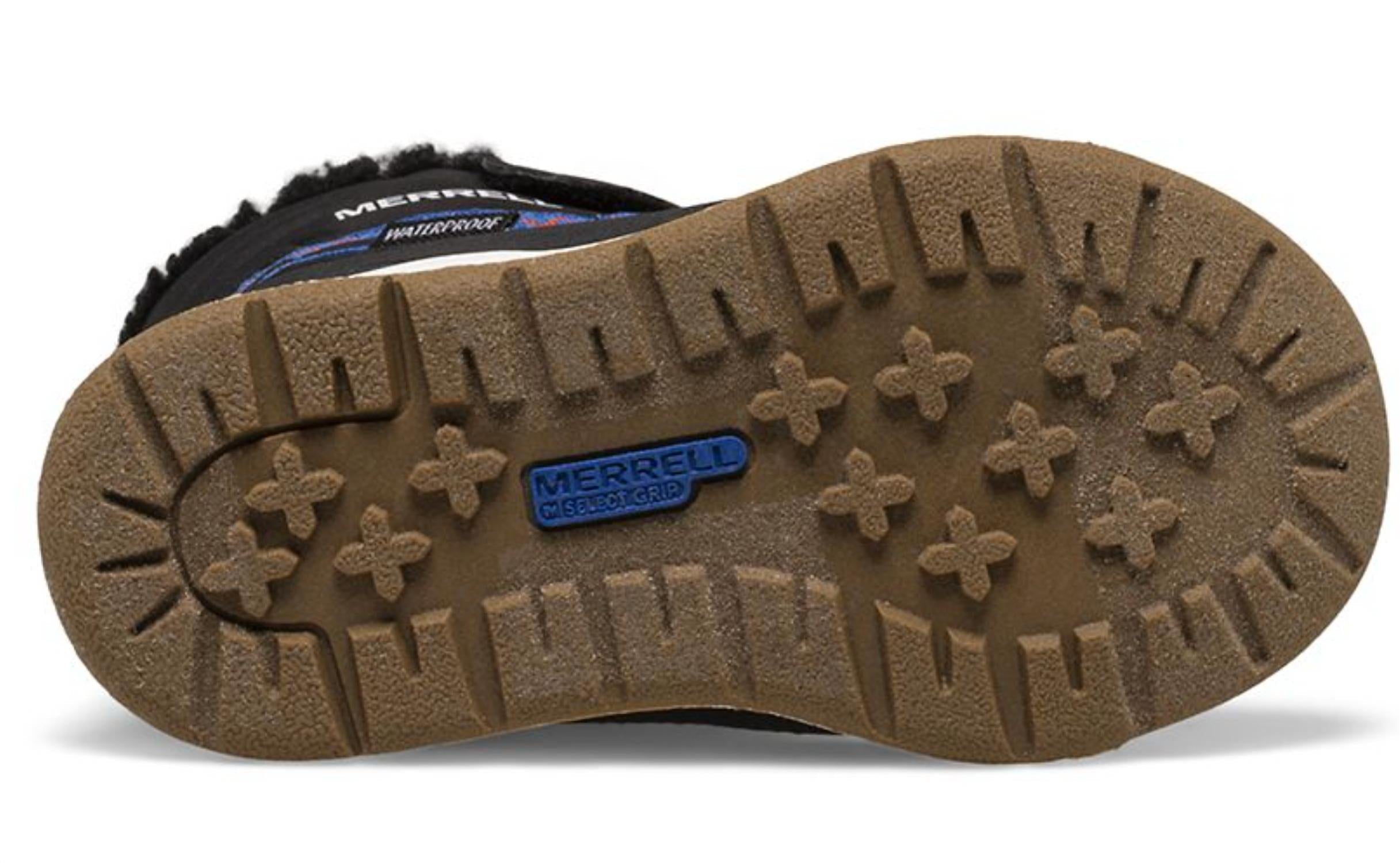 Waterproof upper to keep feet dry and cozy. Synthetic upper for durability. Alternative closure for easy on/off. Temperature rated to -25°F/ -32°C to ensure a warm wearing experience. Recycled PET linings. Anti-stink lining helps reduce odors. 200g insulation. 400g insulation on footbed. Non-marking outsole with extra grip for superior traction. Merrell temperature ratings are approximate based on high activity levels and can be affected by many conditions, including weather, wearer’s activity level, fitness, metabolism, perspiration, circulation, exposure time, clothing and cold sensitivity.