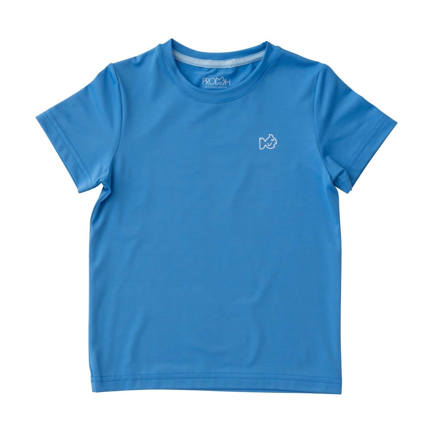 Elevate your child's vacation wardrobe with the Boy's Pro Performance Fishing Tee by PRODOH in a refreshing Marina Blue. Perfect for summer, this short sleeve tee combines style and functionality with UPF 50+ protection, fast-drying, pill-resistant fabric that is gentle on the skin. Composition: 90% Polyester, 10% Lycra. Designed in the USA and imported from Peru, this machine washable top comes with the signature PRODOH "Get Back Here Loop." Elevate your child's outdoor adventures with this versatile minimalist tee.