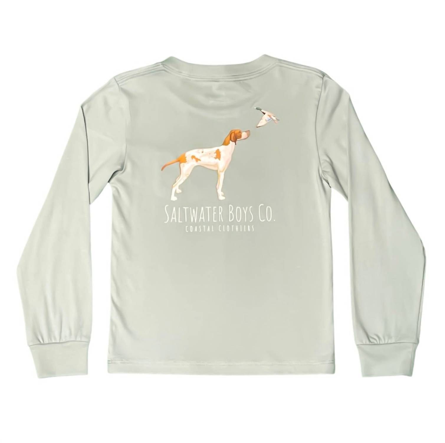 Perfect blend of comfort and style. Crafted from 100% cotton in a vibrant green hue. Long sleeve tee ensures lasting freshness and soft comfort. Spirited graphic design features a loyal hunting dog. Adding a touch of rugged charm that any young adventurer will adore. Designed with a practical front pocket. Perfect for stashing small treasures or a handy fruit snack. Equip your spirited boy with this pup-tastic tee and get ready to set out on new, thrilling expeditions.