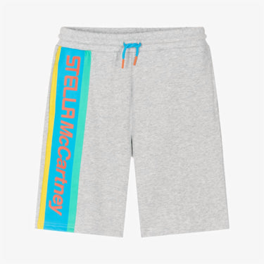 Introducing the Boy's Active Shorts by Stella McCartney Kids, designed for comfort and style with their eye-catching brightly colored stripes and red logo print. Made from 100% mid-weight organic cotton jersey, these grey shorts are both cool and comfortable, perfect for active days. The adjustable drawstring waist, tipped in red, ensures a snug fit that can adapt to growth, so consider sizing up for a better fit. Care is easy with machine washability at 30°C, but keep in mind that Stella McCartney fits small.