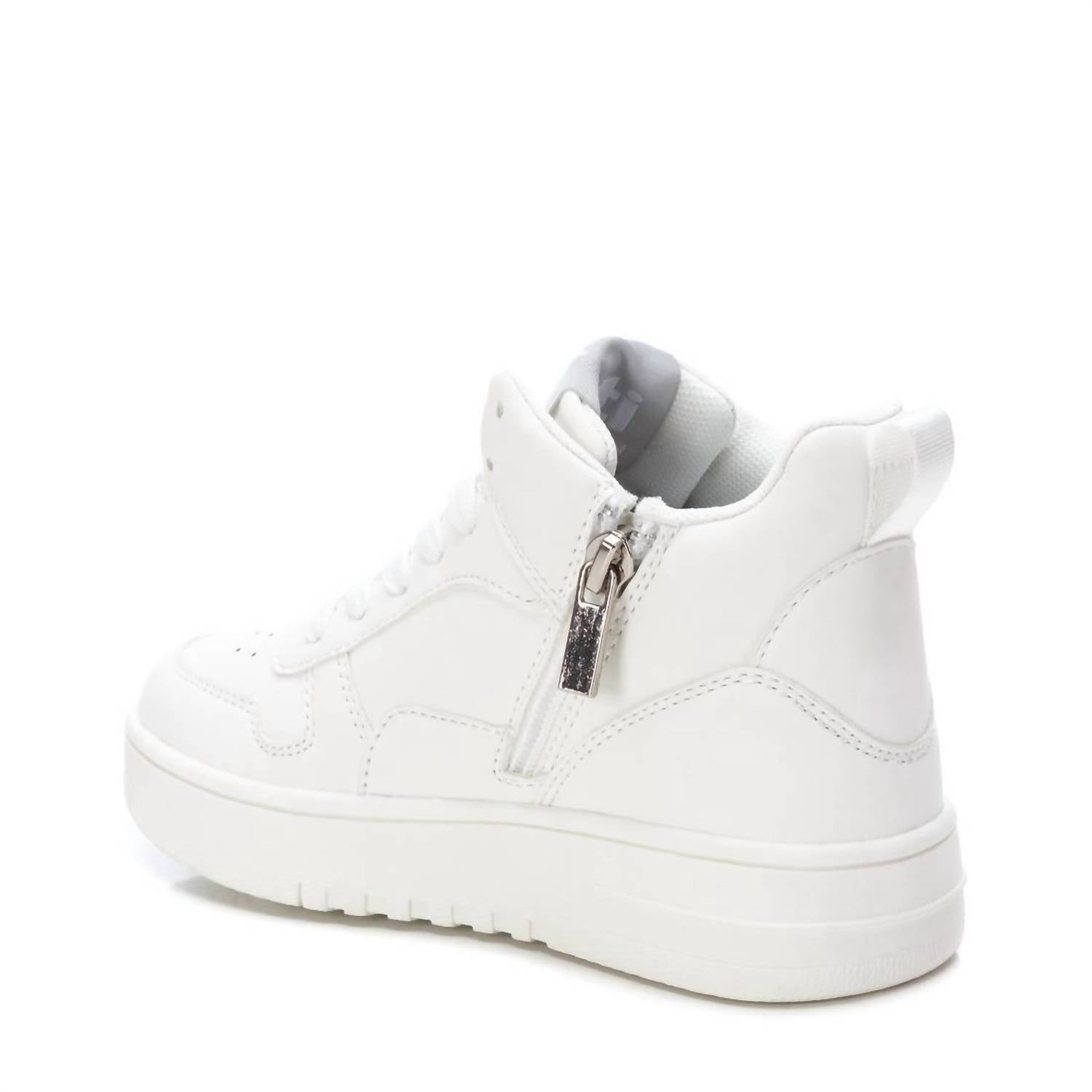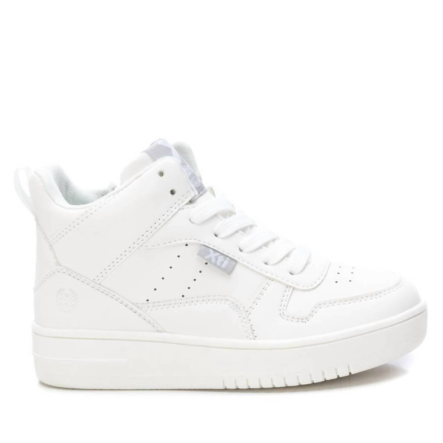 Elevate your little one's wardrobe with the Girls High-top Sneakers by XTI, designed to blend style and practicality. These sneakers feature a fashionable silhouette crafted with high-quality materials, ensuring durability and comfort. The side zipper offers an easy fit, making them perfect for the fashion-forward child. These chic white sneakers are an ideal choice for any young trendsetter.