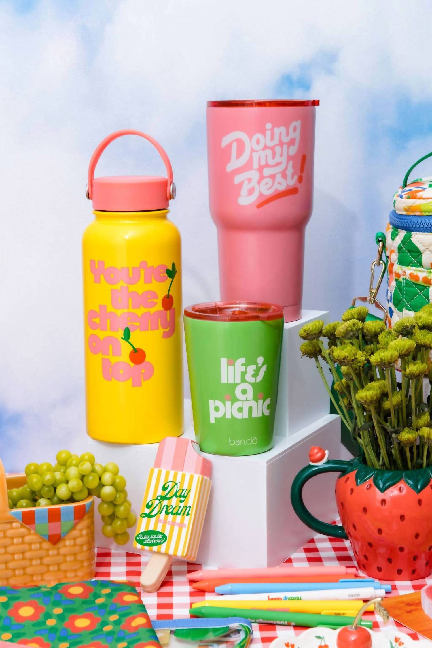 Quench your thirst with the Cherry On Top Stainless Steel Water Bottle by Ban.do, a vibrant yellow accessory perfect for all your adventures. Crafted from durable stainless steel, this bottle keeps your drinks at the ideal temperature while offering a generous 33 oz. capacity. With dimensions of 11 inches in height and 3.5 inches in width, it includes a sticker sheet for personalized flair. For care, hand wash only, ; plus, it's BPA, lead, and phthalate-free for your safety.