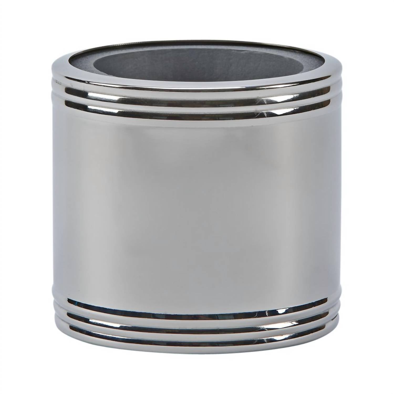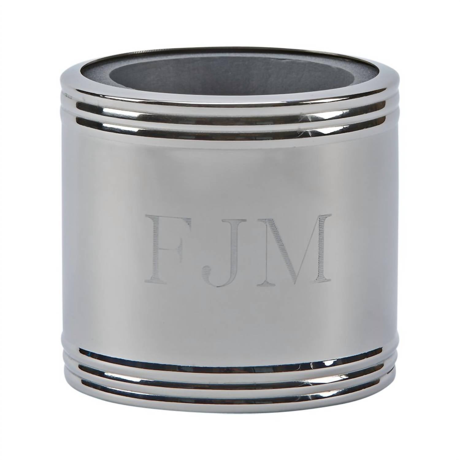 Our chrome plated brightly polished beverage holder (for bottles or cans) is the perfect way to hold your favorite drink. The smooth finish allows for a personalized message. This beverage holder stands 3.25" and is 3.5" in diameter. The non tarnish finish makes it durable, its high sheen makes it stylish. Gift Boxed.