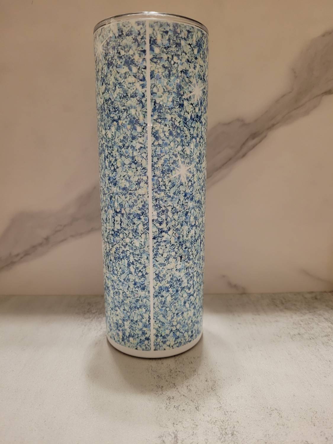 Introducing the Glitter Stainless Steel Double Wall Tumbler by Donny Brooks Designs, a vibrant 20 oz drinkware essential in a striking blue finish. Crafted from high-quality stainless steel, this tumbler features a double-walled construction to keep your beverages at the perfect temperature. It comes complete with a lid and a plastic reusable straw, ensuring convenience on the go. The sublimated design ensures durability, with its baked-in graphics showcasing a glossy finish without added epoxy or physical glitter. Please refer to the last picture for care instructions.