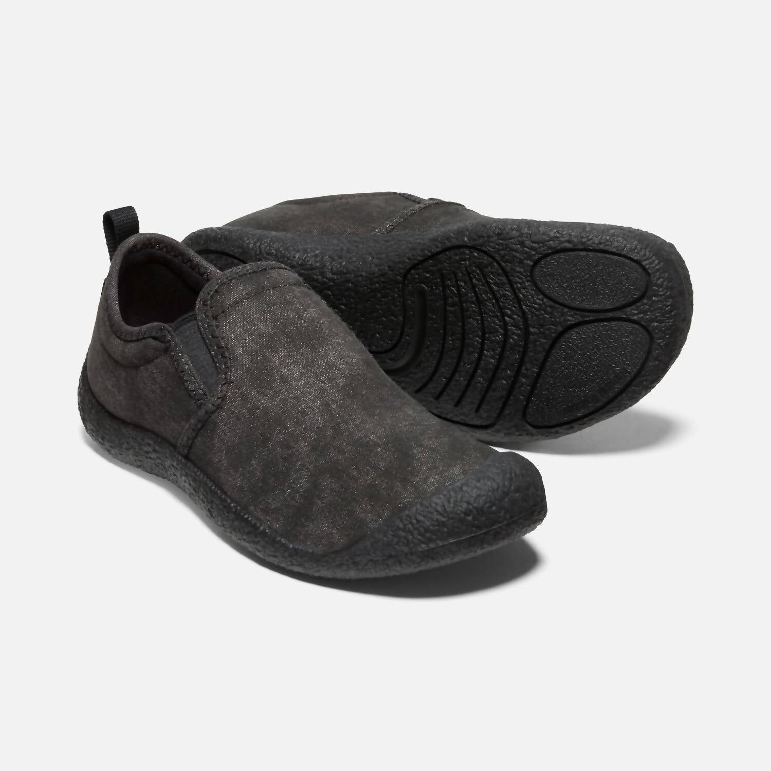 Cute, functional, and comfortable. These sneakers check all the boxes. Discover summer-ready comfort with the Women's Howser Canvas Slip On by Keen, a stylish blend of inside-outside versatility in classic black canvas. Designed with a breathable material, this slip-on features all-day cushioning from its removable PU insole, ensuring the ultimate feel-good experience. The durable rubber outsole offers a sturdy, higher-traction option, perfect for outdoor adventures. Ideal for travel and summer athleisure, these flat heel sneakers are crafted for women with a medium shoe width and round toe shape.