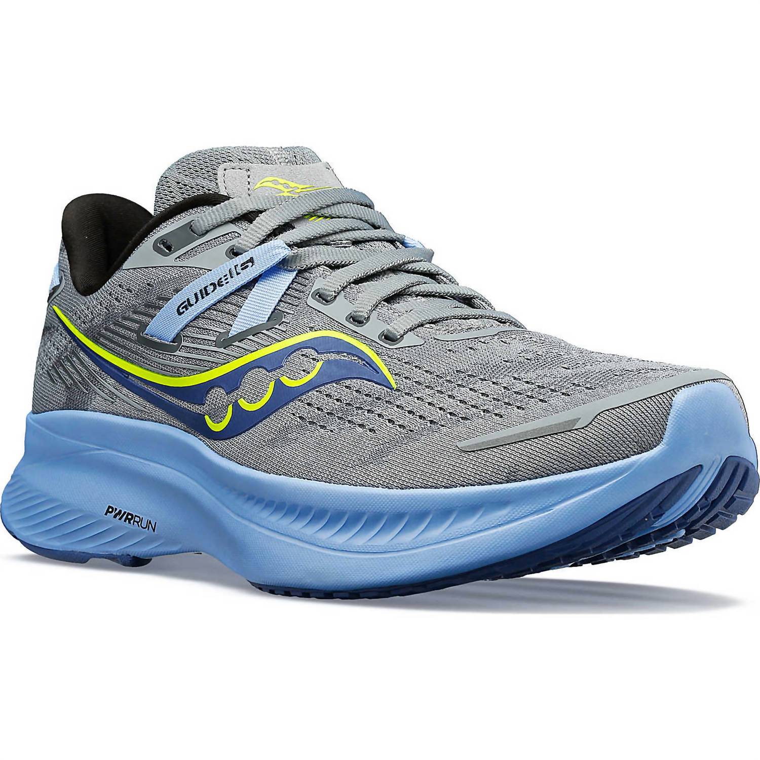 Stylish, comfortable and supportive. These athletic sneakers check all of the boxes. Elevate your running experience with the Women's Guide 16 Shoes by Saucony, featuring a sleek Fossil/Ether colorway. Crafted for women, these athletic shoes showcase a round toe and flat heel design, perfect for comfort and style. The medium width ensures a secure fit, while the rubber material provides durability and traction. Ideal for adults seeking a reliable pair of athletic shoes.