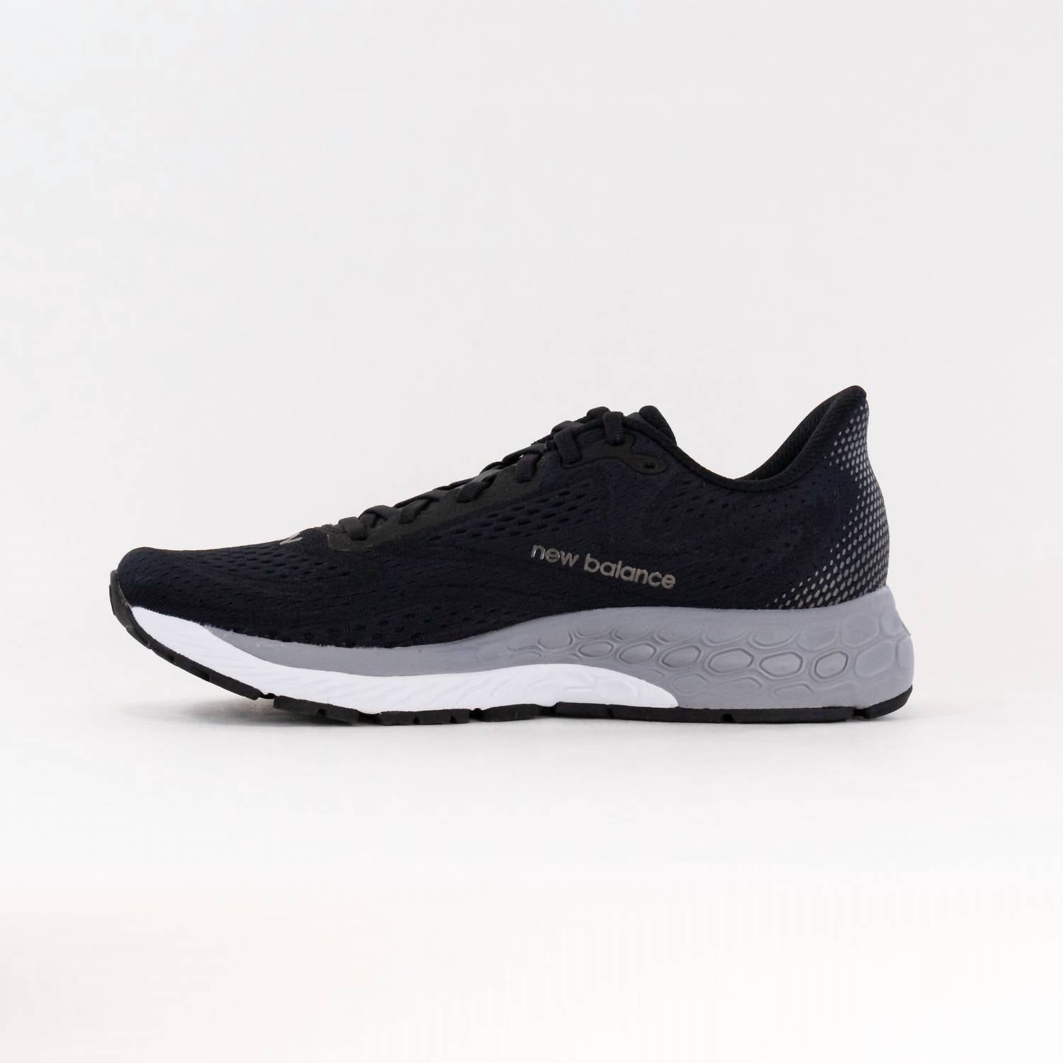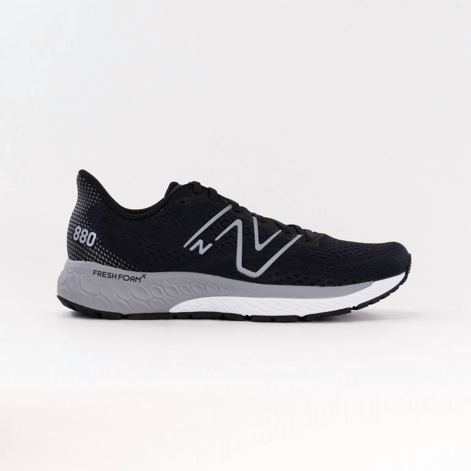Step into the New Balance Fresh Foam X 880v13, where function meets fashion in a sleek black and white design. This men's athletic shoe offers unparalleled comfort thanks to its plush Fresh Foam X midsole, composed of approximately 3% bio-based content, and a durable NDurance rubber outsole. Its synthetic and mesh upper, featuring no-sew construction, ensures a sleek fit and feel. Adjustable lace closure. The shoe boasts a 10mm drop and weighs 300 grams (10.6 oz), perfect for daily wear or camping adventures.