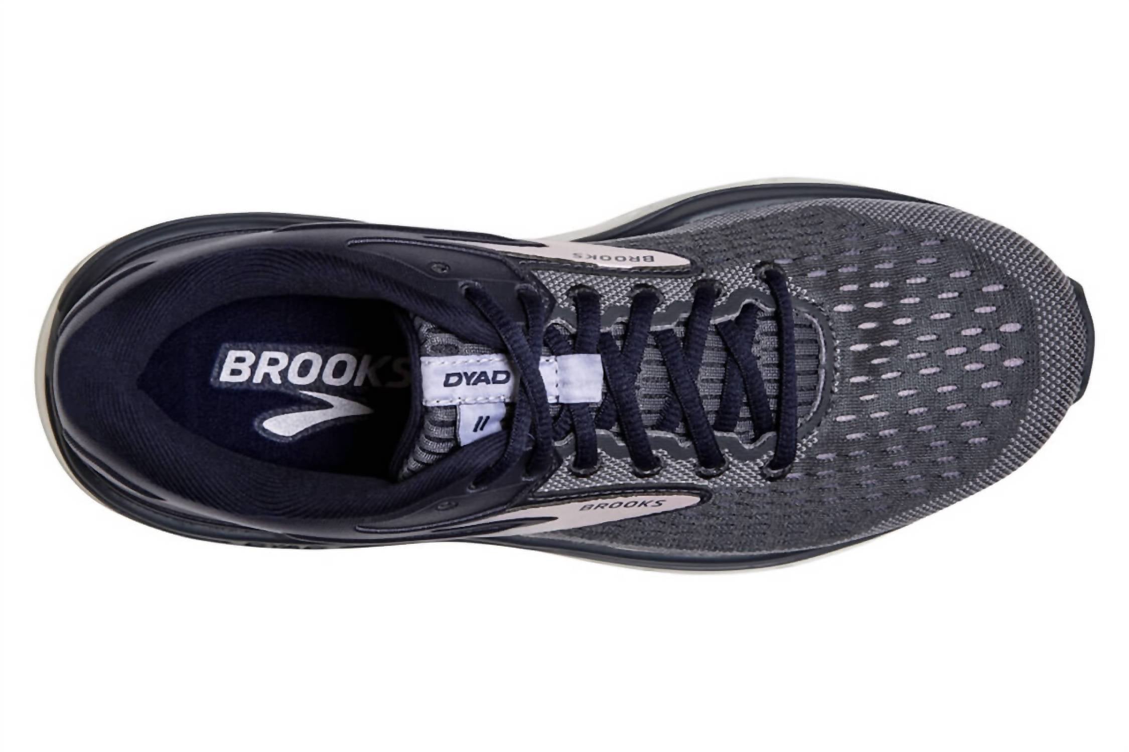 Experience the perfect blend of cushioning and stability with the Women's Dyad 11 Running Shoes by BROOKS in a chic Ombre/Primrose/Lavender colorway. Designed for fitness and workout enthusiasts, these shoes cater to both walkers and short to medium distance runners, specifically those who use orthotics or have balance concerns. Weighing 304g, these vegan runners are praised by podiatrists for their unique stability, provided by a sole elevation of 10.0mm and a round toe shape. Ideal for road surfaces, these athleisure shoes are perfect for summer exercise routines.