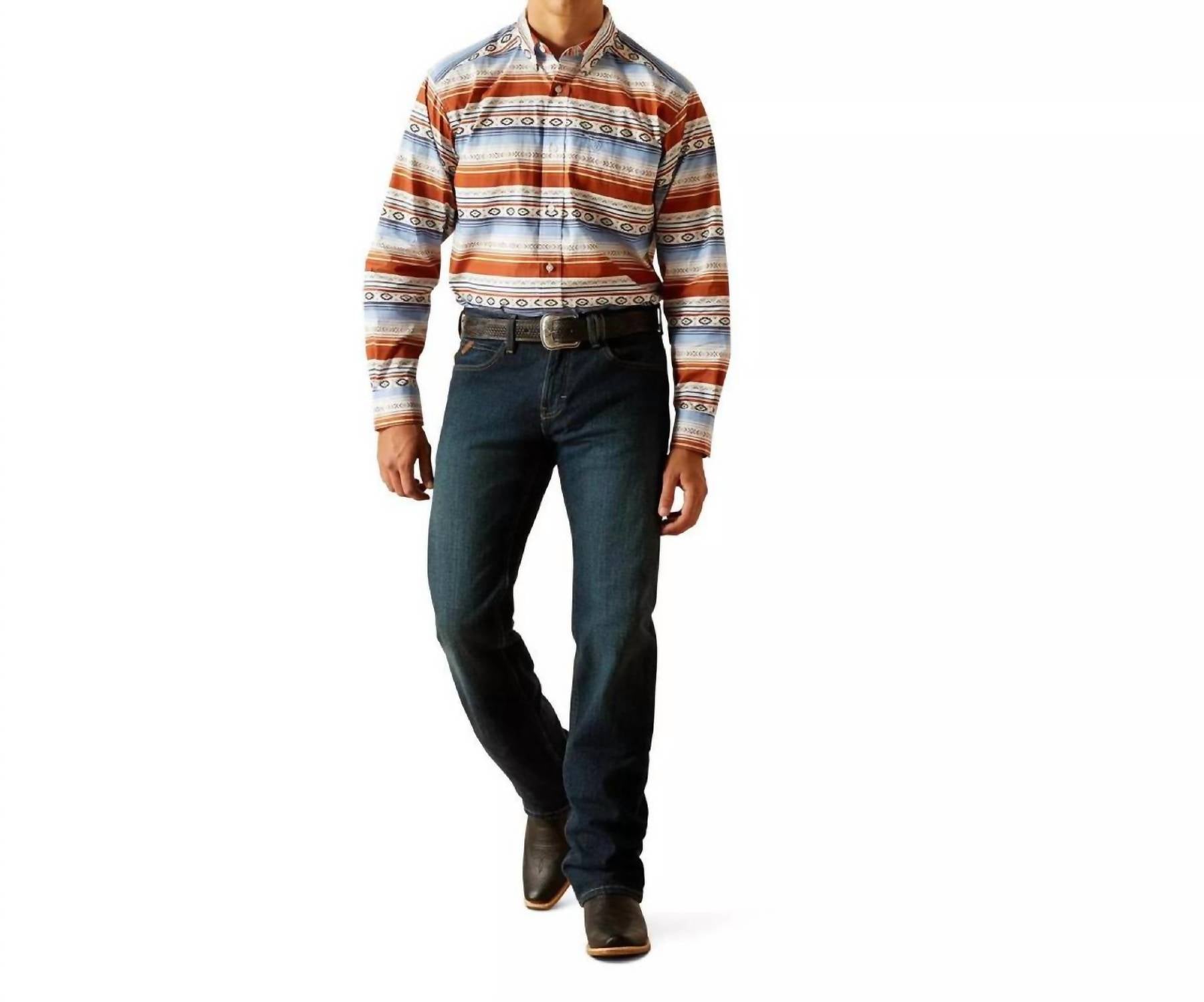 Meet the Dexter Jasper Stone Aztec Shirt by ARIAT, a standout piece for the style-savvy man. This long sleeve shirt showcases the vibrant multi-color palette of printed poplin fabric, capturing a distinctly Western vibe. Crafted from 100% cotton, it ensures comfort while allowing for unrestricted movement thanks to Greater Arm Mobility™. Closure: Button closure. Care: Machine wash.