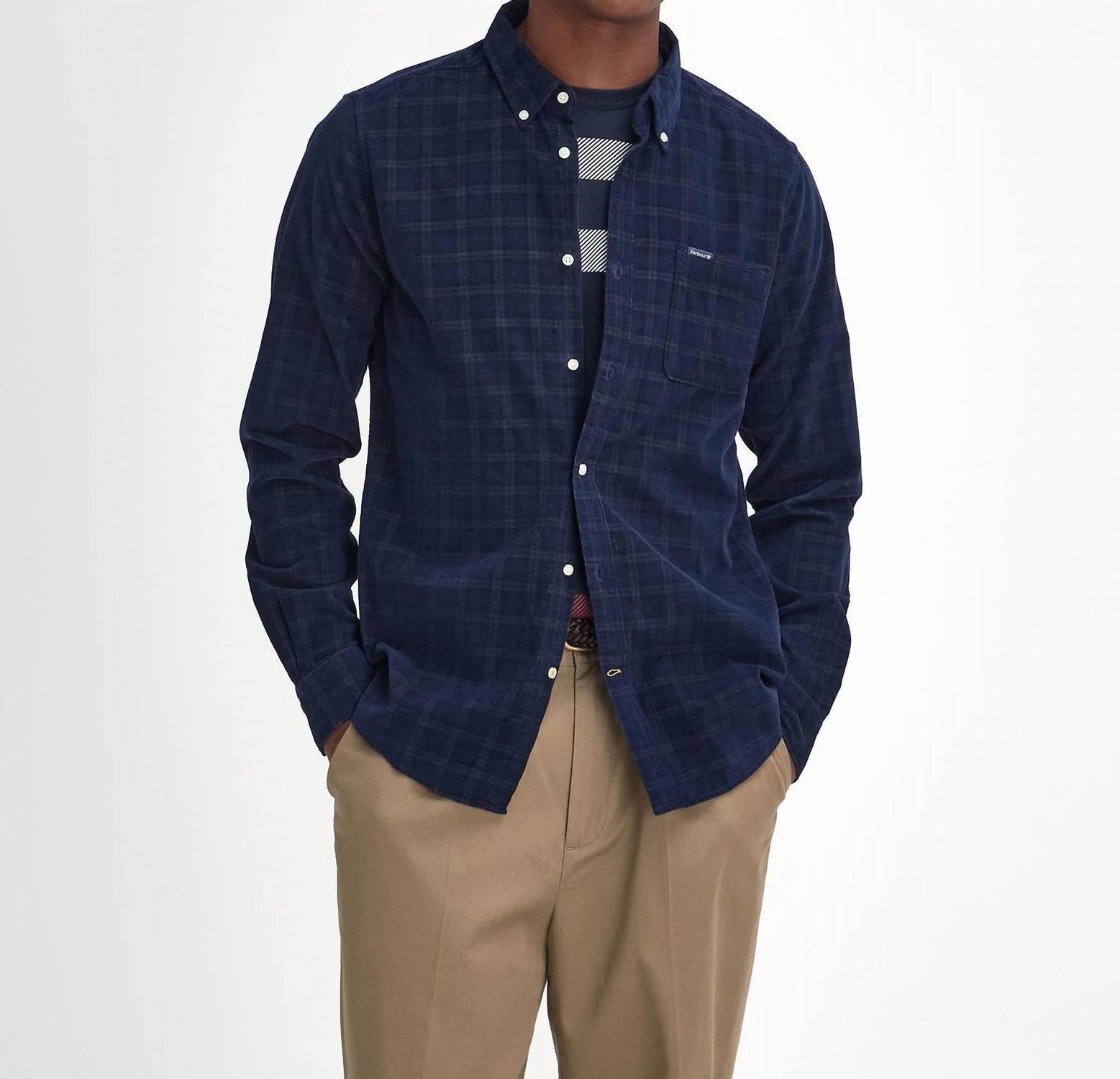 Elevate your casual wardrobe with the Barbour Harthill Tailored Checked Cord Shirt, perfect for an effortless smart-casual look in navy. This long-sleeved shirt is crafted from 100% cotton micro cord and features a classic plaid and check pattern. It comes with a convenient left chest pocket and is finished with the distinctive Barbour and Shield branded label. For easy maintenance, simply machine wash at 30°C.