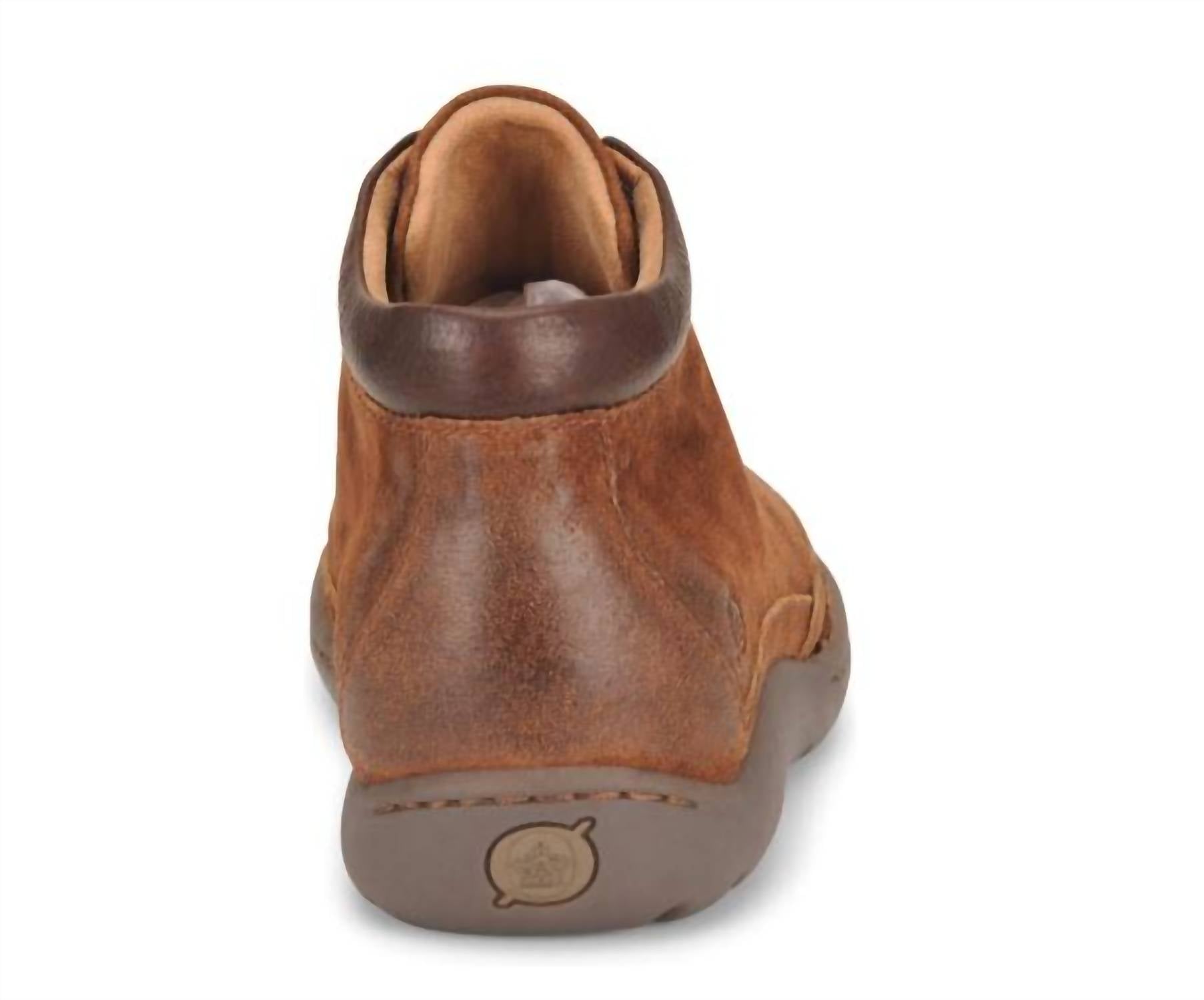 This rugged casual boot offers all-day comfort and durability with a hand-finished leather, nubuck, or textured leather upper. A breathable fabric suede lining and removable, foam-cushioned suede footbed ensure softness and support. Finished with a flexible, high-traction rubber outsole and Opanka hand-crafted construction. Heel is 1 1/4", Shaft is 3 1/3", Circumference is 12".