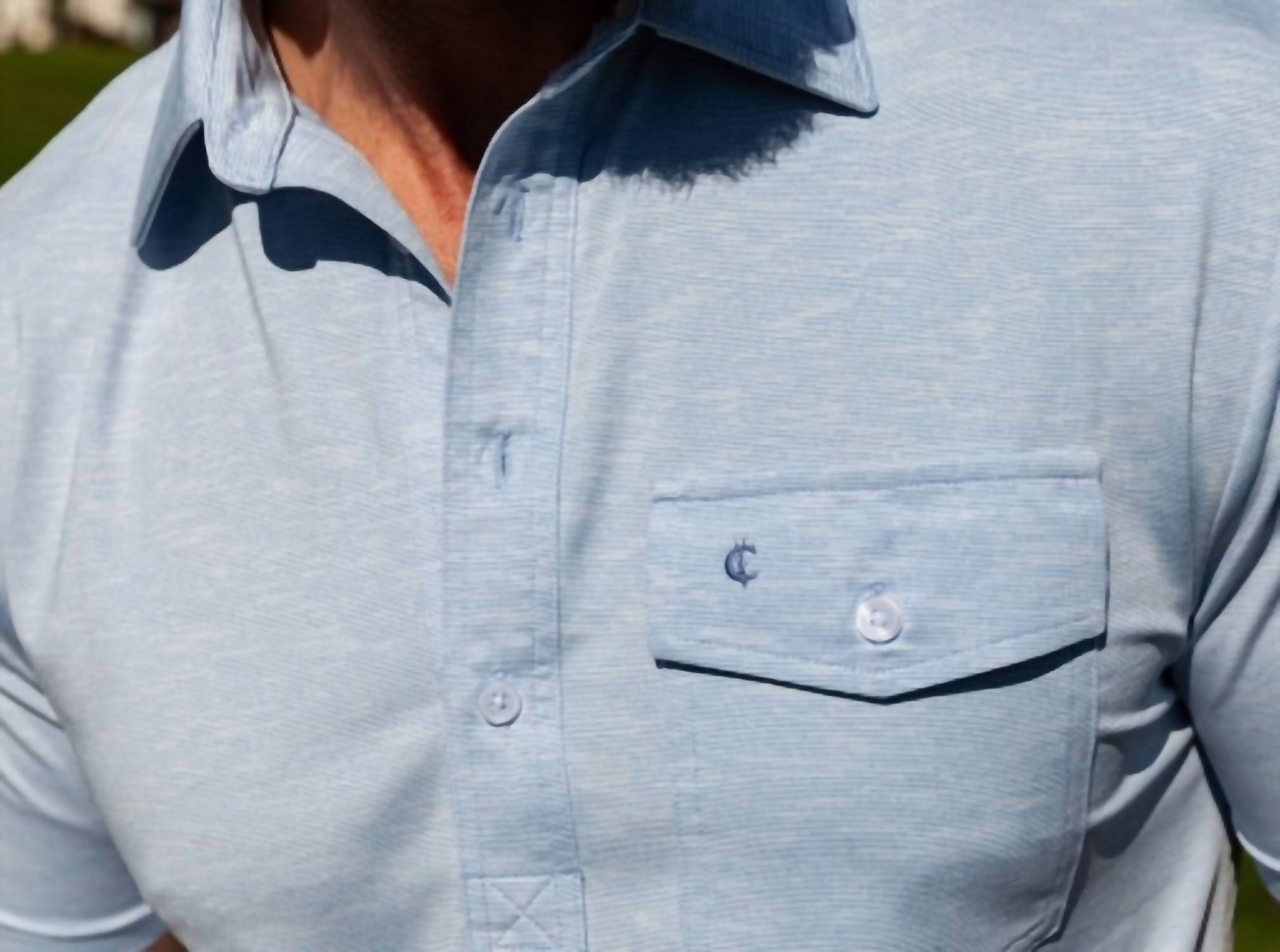 Elevate your game day style with the Heather Performance Sport Players Shirt by Criquet. Designed in a Yacht Club hue, this solid polo features short sleeves and a classic collar, perfect for summer workwear or a Father's Day gift. The shirt is equipped with a practical pocket and a convenient button closure. Ideal for the modern man who values both form and function.