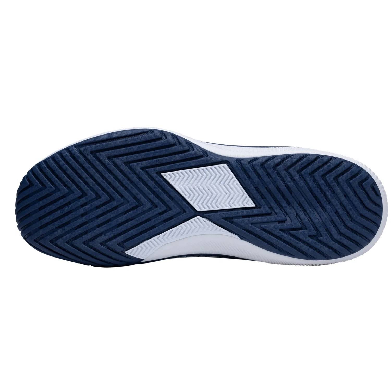 Introducing the Men's Court Flo Pickleball Shoes by Diadem Sports, designed for performance on hard courts with a breakthrough Airweave mesh upper for ultimate breathability and flexible support. Featuring a Flo Foam midsole, these shoes provide responsive cushioning, while the EndoShell toe cap offers enhanced abrasion resistance. The carbon rubber outsole ensures a high-abrasion grip, complemented by a non-marking tread for court-safe traction. Lighting up the court in a clean white with deep navy accents, these shoes have an 8.0mm heel drop and are true to size with a medium width.