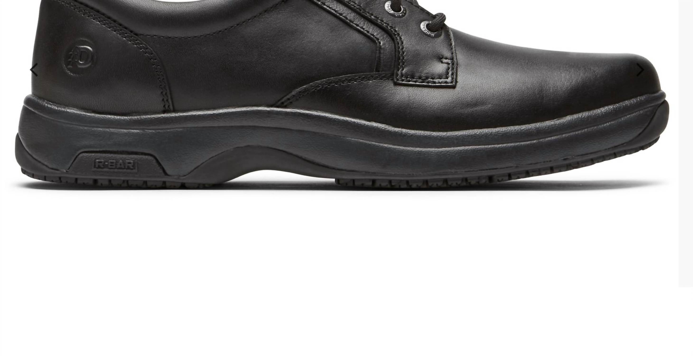 Step into effortless style with the Men's 8000 Nonslip Plain Toe Oxford by Dunham, a monochrome classic in black perfect for fall and church occasions. Expertly crafted with premium waterproof leather, this round toe oxford offers unparalleled comfort and durability, ensuring your feet remain supported throughout the day. The slip-resistant rubber outsoles stand up to dry, wet, and oily conditions, enhancing their versatility. With a flat heel measuring 1" and under, these oxfords deliver a sleek, sophisticated silhouette.