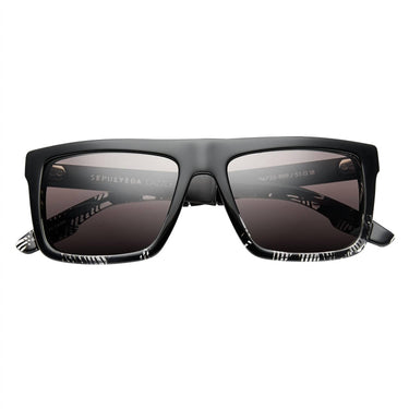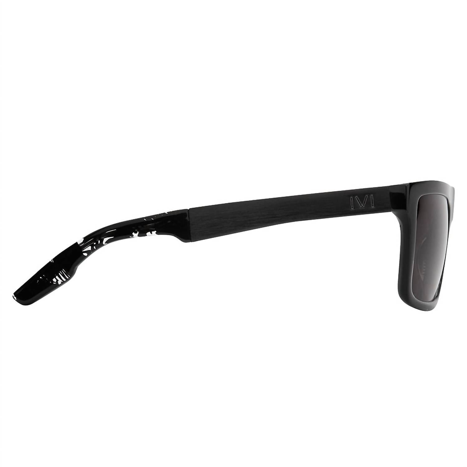 Presenting the Men's Sepulveda Sunglasses by IVI VISION, a bold statement in polished dazzle brushed black with a grey lens. Designed with a flat top, these square sunglasses feature a frame front crafted from premium Italian cellulose acetate by Mazzucchelli 1849 and temple arms made with precision machined aluminum. The lenses by Carl Zeiss are nylon and laser-etched with the signature Z, offering 100% UVA and UVB protection with precise clarity. Choose from polarized options for enhanced visual comfort and protection.