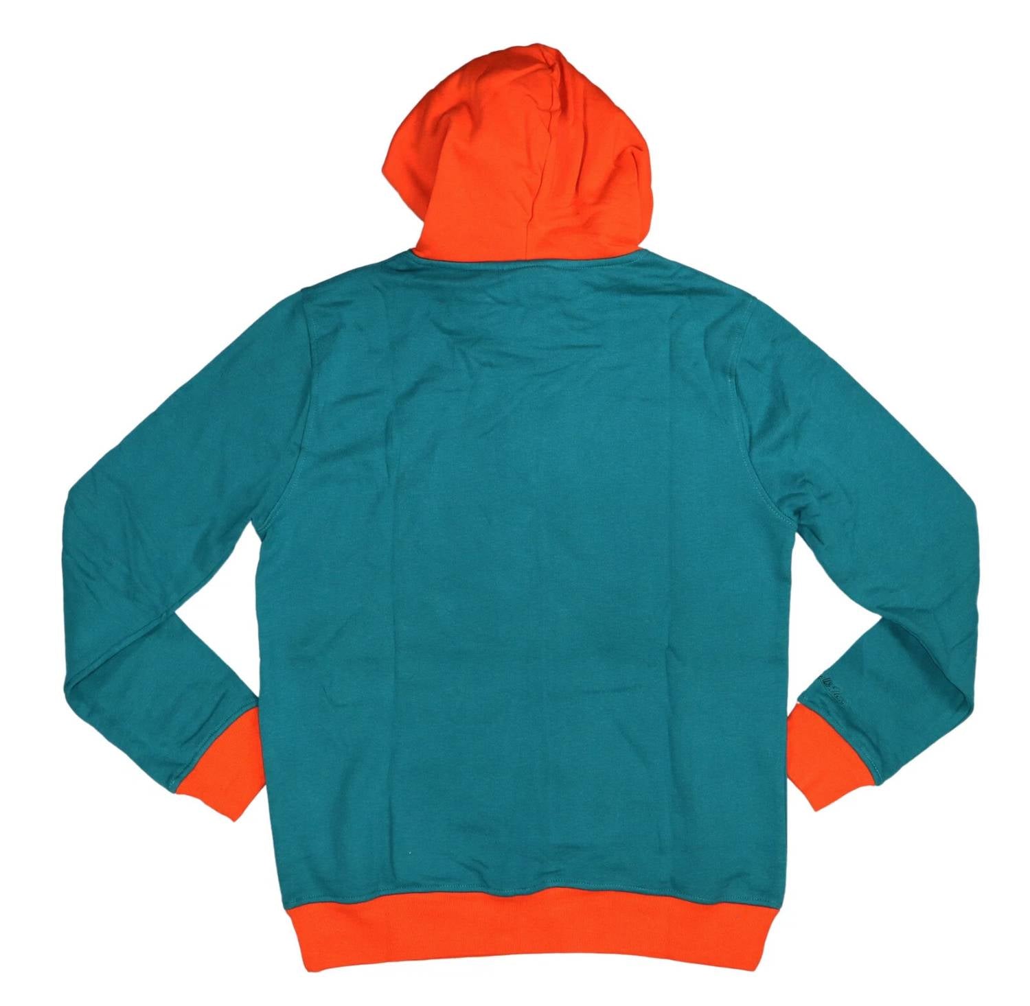 Stay stylish and cozy this fall with the Mitchell & Ness Men's Miami Dolphins NFL Throwbacks Hoodie Sweatshirt in vibrant green and orange. Designed with long sleeves and made from a high-quality blend of 80% cotton and 20% polyester, this regular fit pullover hoodie boasts a hooded neckline with a drawstring and a front kangaroo pouch for added convenience. Featuring an oversized throwback team logo, it’s a perfect choice for game day or streetwear enthusiasts. Closure is a pull-on style, and it is machine washable for easy care.