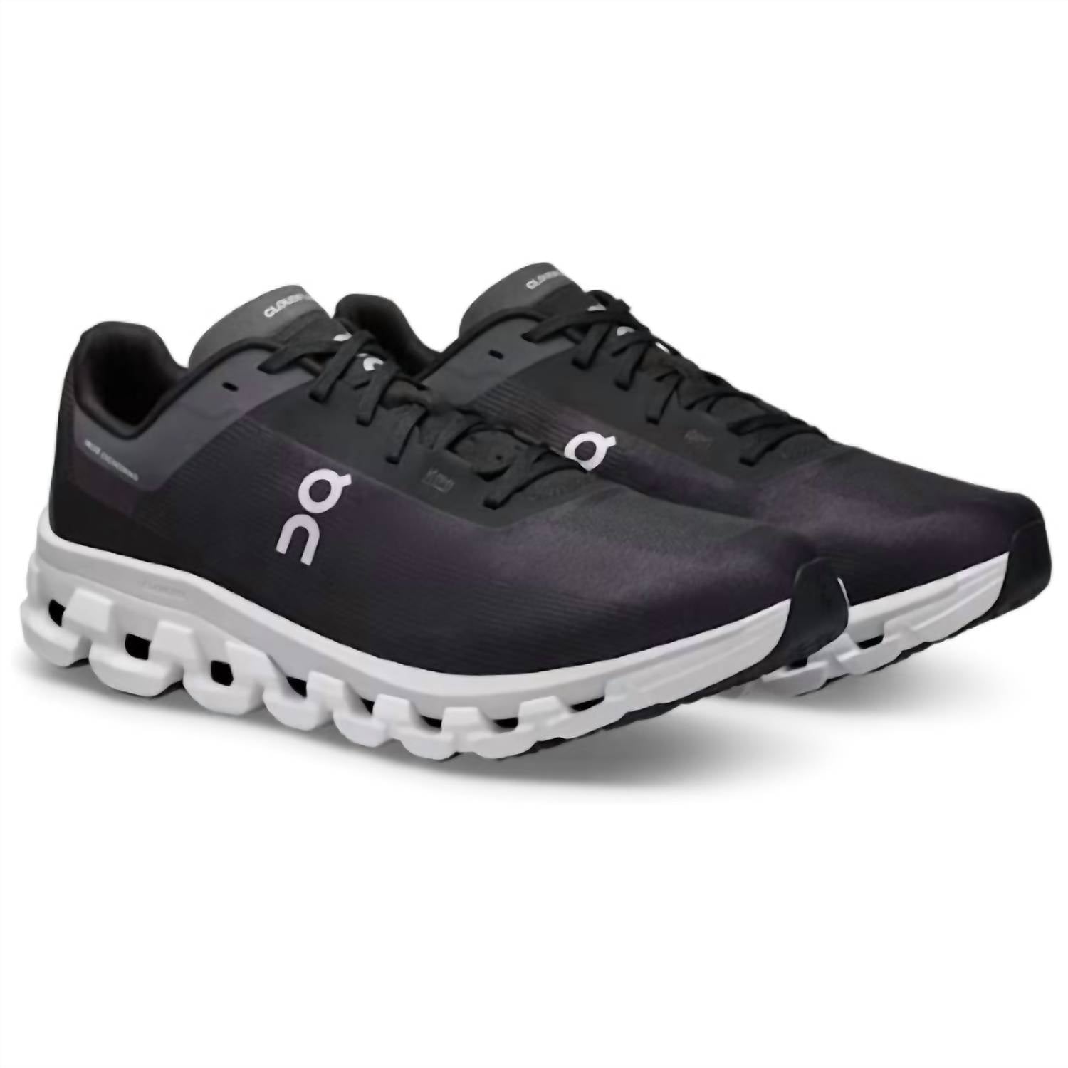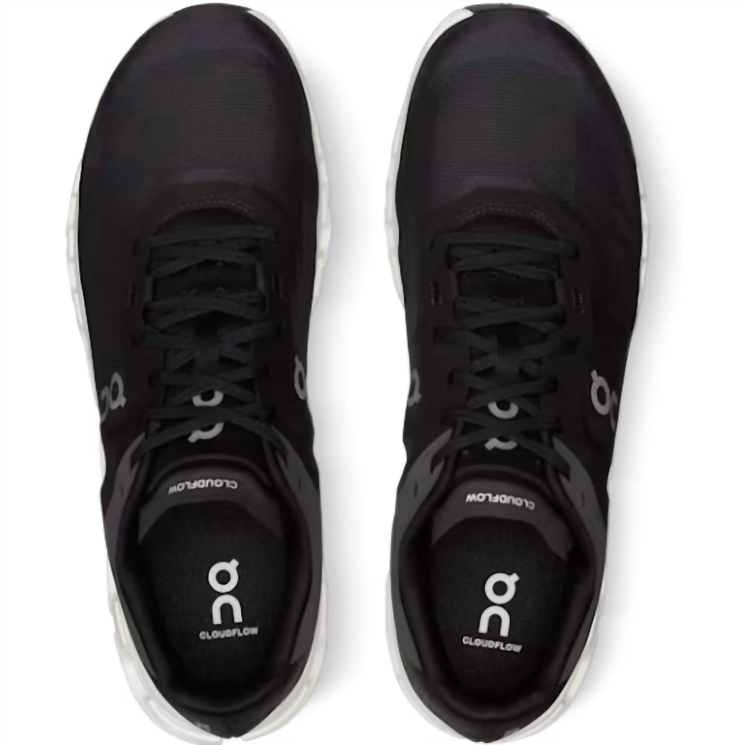 Step up your workout game with the Men's On Cloud Flow 4 Shoes by On Running, designed for optimum athleisure appeal. Featuring engineered mesh uppers, these shoes blend style and performance seamlessly in a sleek black and white color combination. They're perfect for summer fitness outings, offering a comfortable flat heel and round toe shape for all-day comfort. Ideal for athletic endeavors during the 4th of July holiday season.