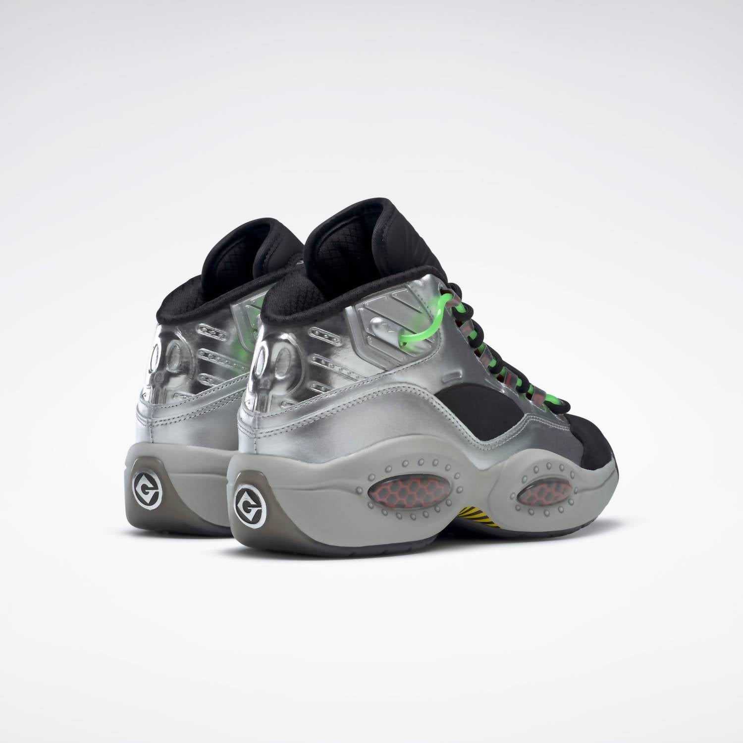 Step onto the court with style in the Reebok Minion x Question Mid Gru's Lab shoes, paying homage to the dynamic player Allen "The Answer" Iverson. Crafted with a durable leather upper, these basketball-inspired shoes feature a distinctive silver metallic, black, and scarlet colorway. Signature Soft Hexalite hexagonal cushioning ensures an extra soft feel, complemented by a rubber outsole for optimal traction and durability. Designed for men, these imported streetwear staples are perfect for game day, embodying a flat heel and round toe shape for comfort and trendsetting appeal.