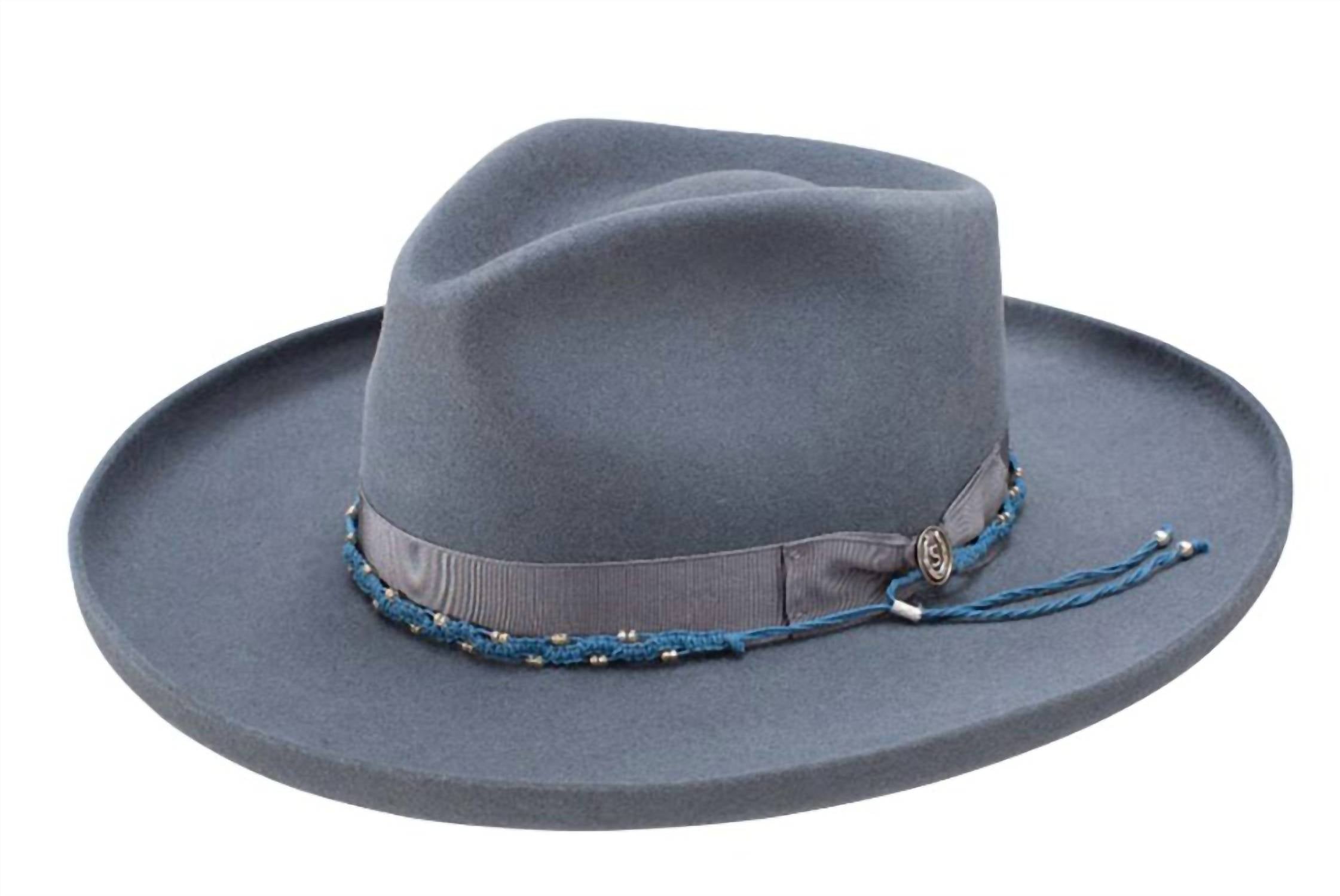 Embrace timeless style with the Stetson Outlier Firm Wool Felt Fashion Hat by Resistol, a standout piece featuring a stone wash finish. Made entirely of 100% wool, it highlights a 3 3/4" brim and a 4 1/2" pinch front crown for an elegant silhouette. The faux leather sweatband ensures a snug fit and added comfort, complemented by the ribbon and hand-woven beaded band for extra sophistication. Perfect for diverse environments, this hat offers both protection and undeniable style.