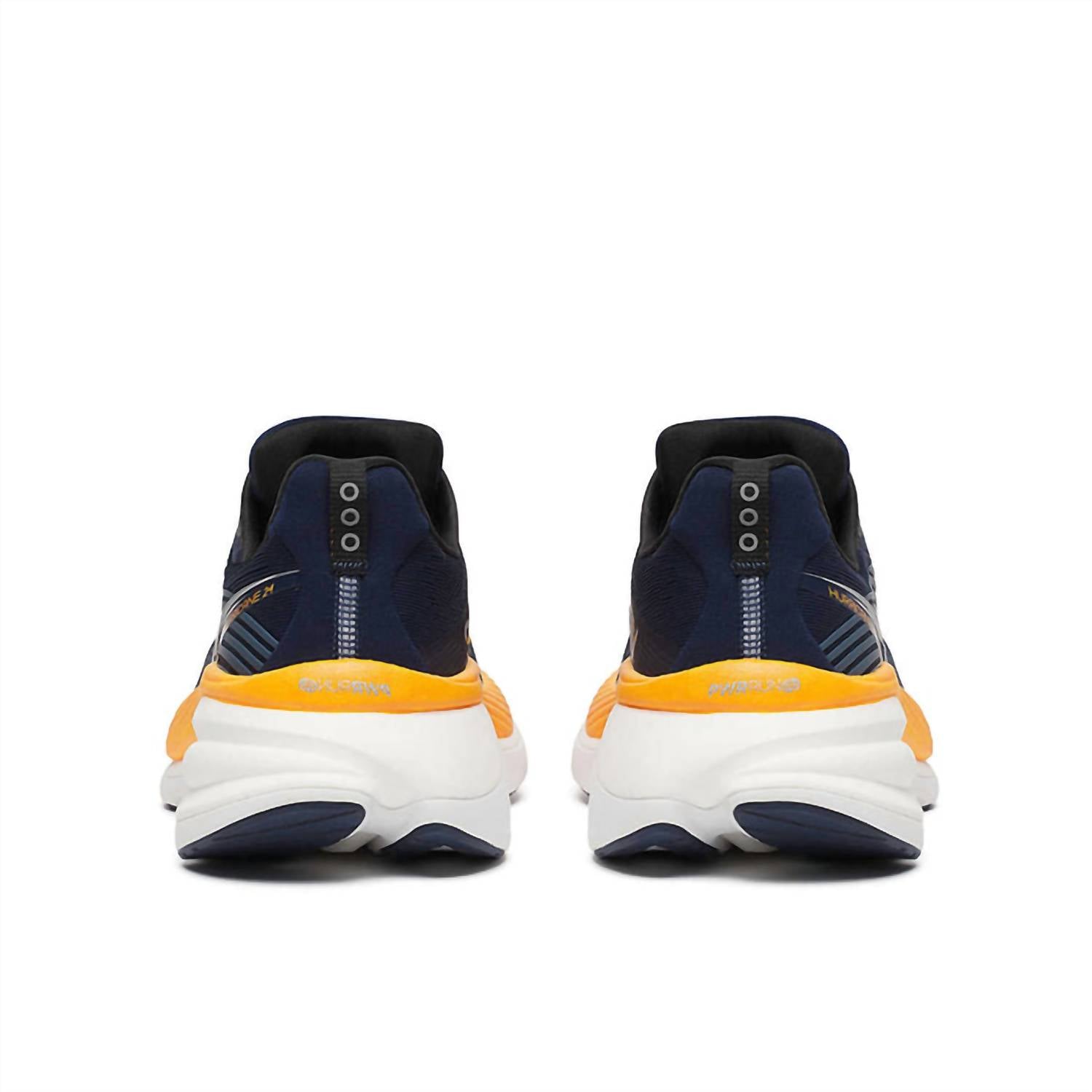 Step into unparalleled comfort with the SAUCONY Men's Hurricane 24 Running Shoe in 211 Navy/Peel. Designed for fitness and workout enthusiasts, this athletic shoe features a double-layer dual-cushioning system combining plush, energy-returning PWRRUN PB foam with a supportive PWRRUN foam frame for maximum cushioning. The shoe also boasts new-era geometry and CenterPath Technology, ensuring optimal protection with every stride. Perfect for summer athleisure, the Hurricane 24 is finished with a round toe for a stylish, comfortable fit.