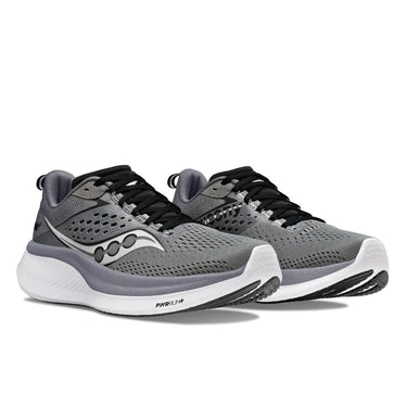 The Men's Ride Seventeen Sneaker by SAUCONY in Cinder Black is the ultimate choice for athleisure enthusiasts. Designed with a round toe and a low chunky heel height of 1 1/4"-2", these athletic shoes are perfect for summer fitness and workout sessions. The women's adult sneaker is not only functional but also stylish, fitting seamlessly into your active wardrobe. Made with quality materials and attention to detail, it ensures comfort and durability for your fitness journey.