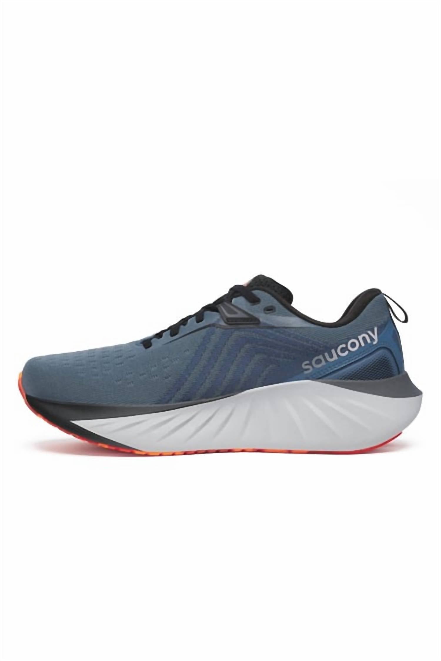 Step into comfort and style with the Men's Triumph Twenty Two Sneaker by SAUCONY, perfect for the athleisure trend. These Mirage/black athletic shoes feature a low chunky heel for stability and a round toe design. Ideal for fitness and workouts, they are crafted for adult men looking for summer-ready footwear. Country of origin not specified.