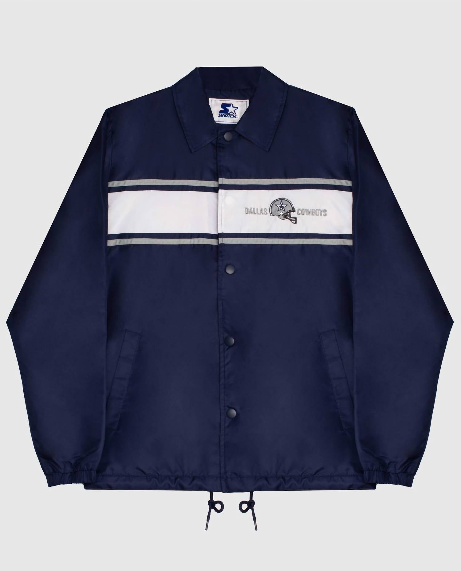 Starter - Men's Dallas Cowboys Snap-front Collared Chest Stripe Jacket