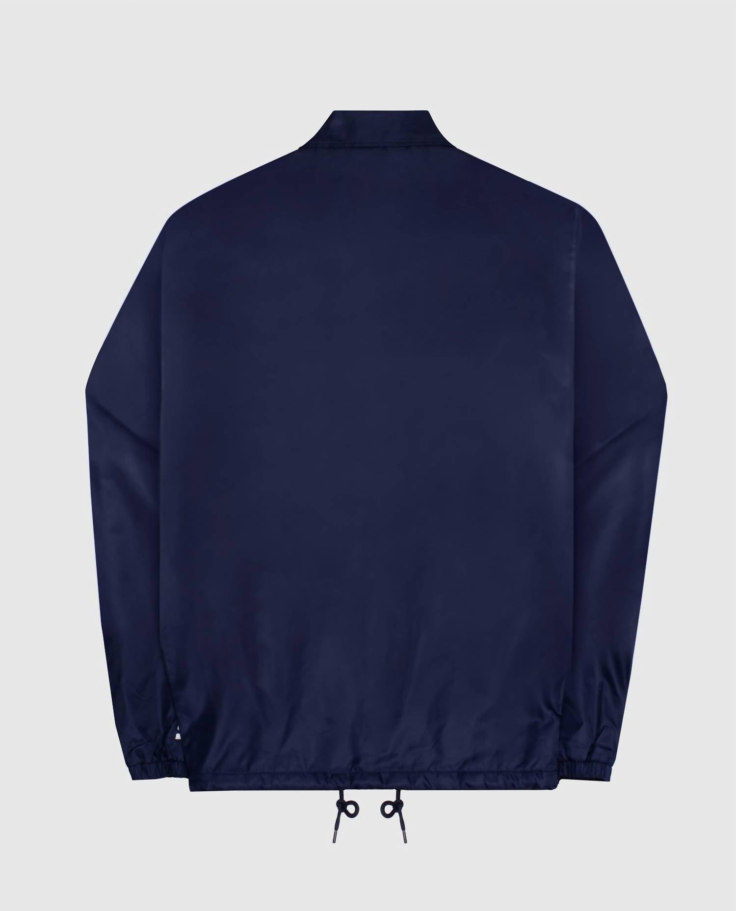 Introducing the Men's Dallas Cowboys Snap-front Collared Chest Stripe Jacket by Starter, crafted to showcase team pride with style. This long sleeve jacket features a lightweight design with snap closure and a striking navy color. The body is made of durable 100% nylon mini twill, with a primary team color body and a secondary team color stripe across the chest. Additional details include front pockets, an adjustable drawstring waistband, and a lined inside with an inside pocket.
