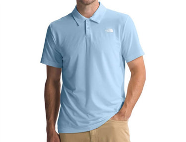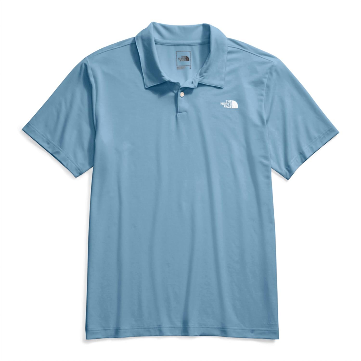 Introducing the Men's Adventure Polo by THE NORTH FACE, designed in a stylish Steel Blue shade for game day and summer outings. This solid polo features short sleeves, a classic collar neckline, and a button closure for easy wear. Crafted from high-quality polyester, it ensures comfort and resilience for active days. With its sleek design, this polo is the ultimate addition to any adventure-focused wardrobe.