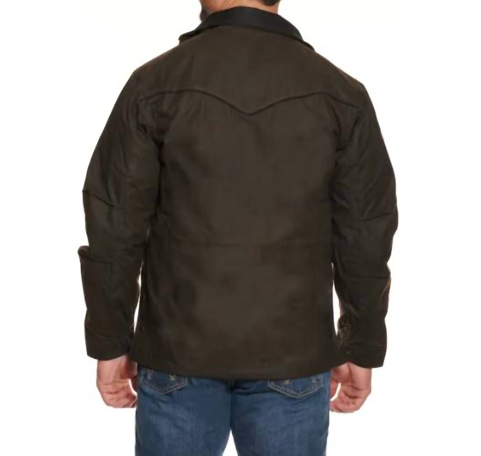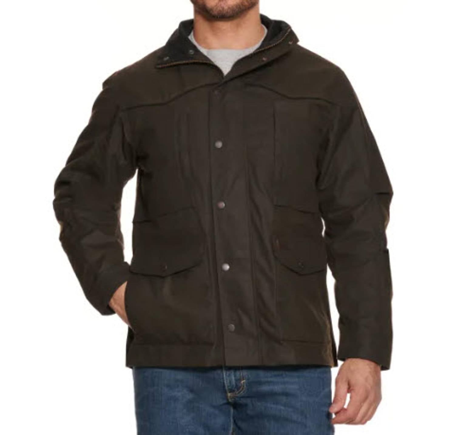 Stay protected in this durable oilskin jacket, made from premium 12oz waterproof cotton. It features a polar fleece-lined body, taffeta-lined sleeves, and practical details like zip chest pockets, double-entry hand pockets, and an adjustable drawstring waist. Shell is 100% cotton, lining is 100% polyester. Hose to clean and hang to dry.