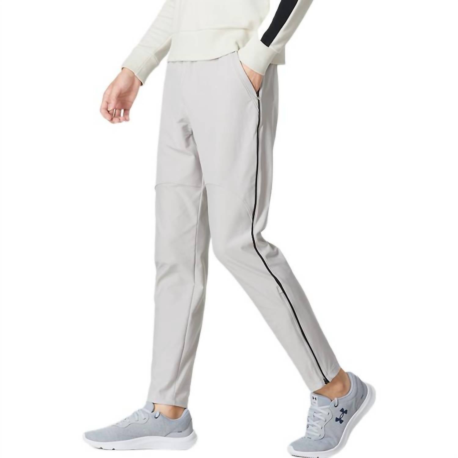 Elevate your running experience with the Under Armour Qualifier Run 2.0 Pants in light grey, engineered for both function and style. These men's activewear joggers feature an expandable center-front waistband pocket that offers water resistance and secure phone storage without bouncing, with a soft ribbed knit waistband and reflective details for safety during low-light runs. Constructed from a blend of 59% Elastarell and 41% Polyester, these pants also include woven panels made of 87% Polyester and 13% Elastane for added durability, all designed to wick sweat and dry rapidly. With a relaxed fit and tapered leg, these joggers have a pull-on closure, zip hand pockets, and an inseam of 30.5 inches. Care: Machine wash, tumble dry.